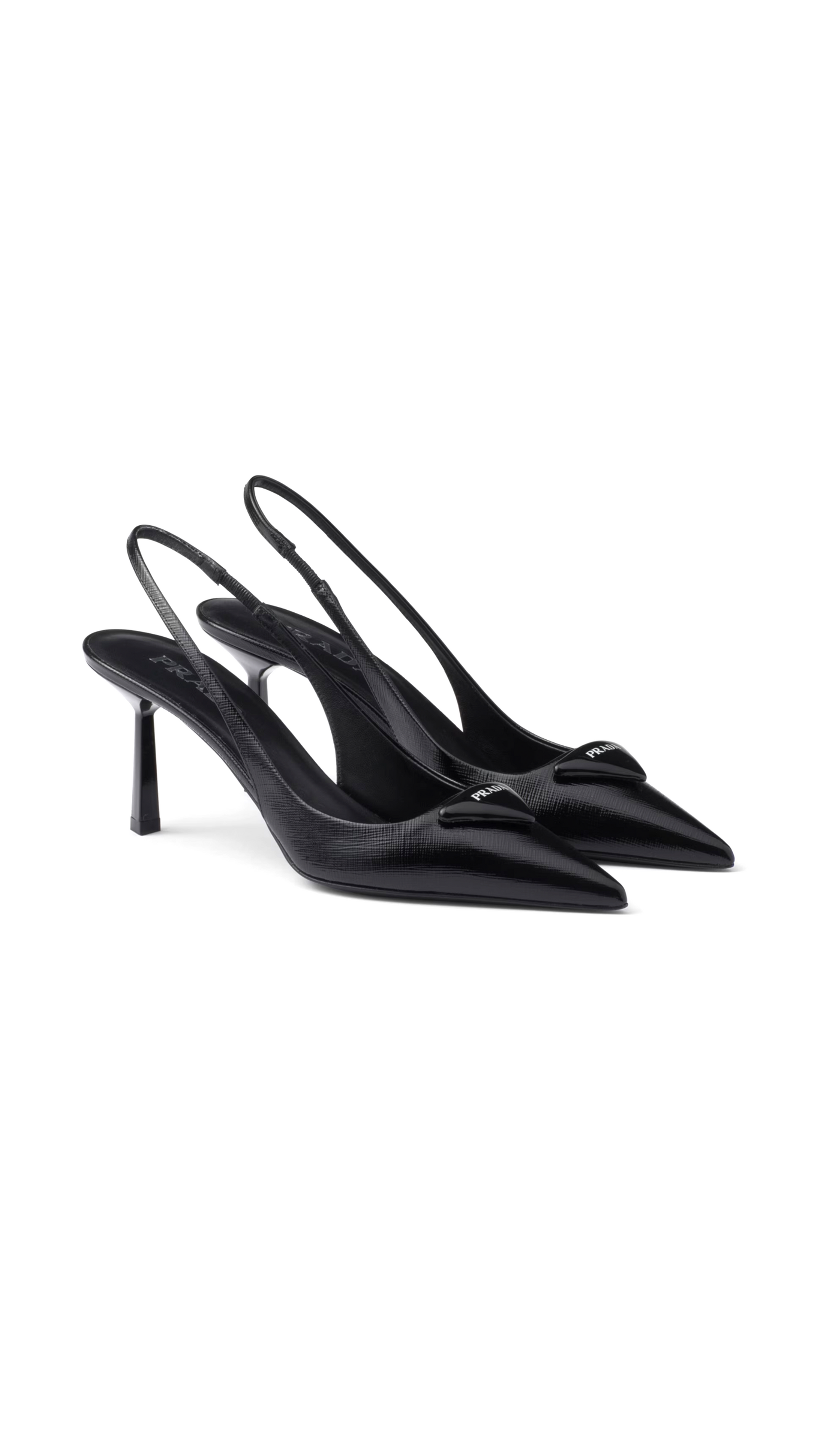 Saffiano Patent Leather Slingback Pumps - Black