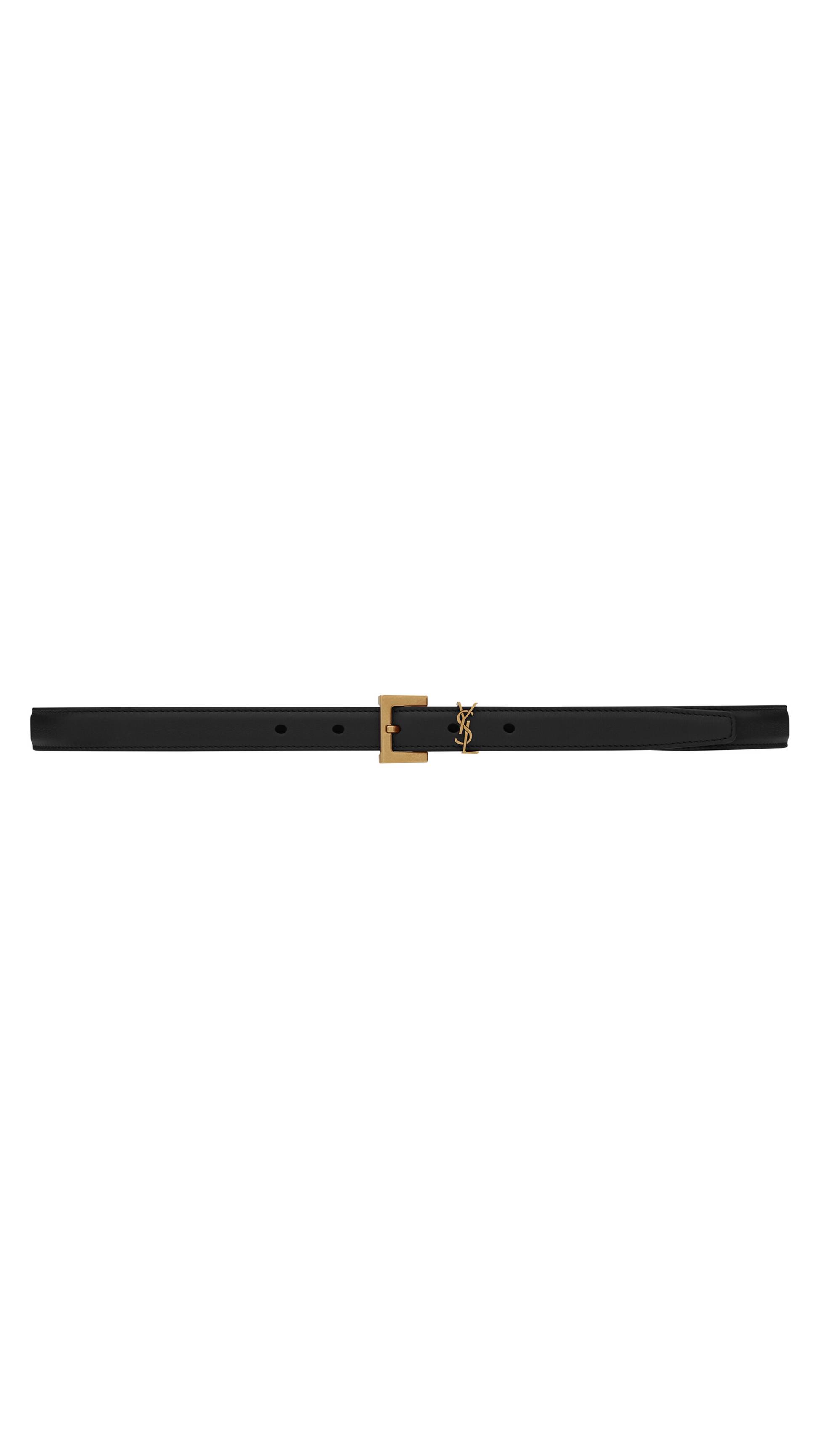 Cassandre Thin Belt with Square Buckle in Box Leather - Black