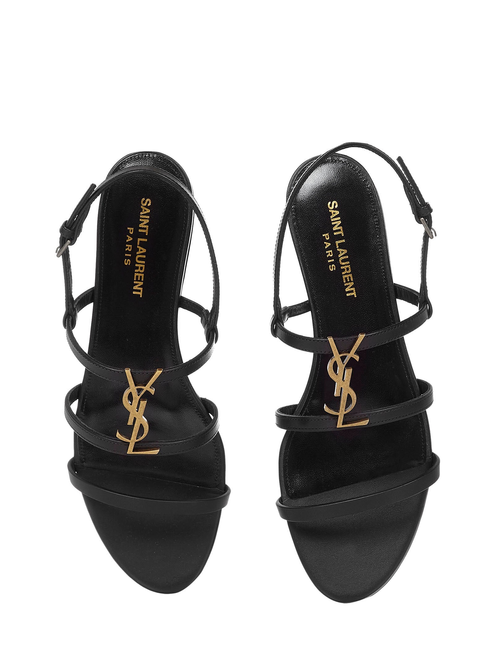 Cassandra Flat Sandals in Smooth Leather With Gold-Tone Monogram - Black