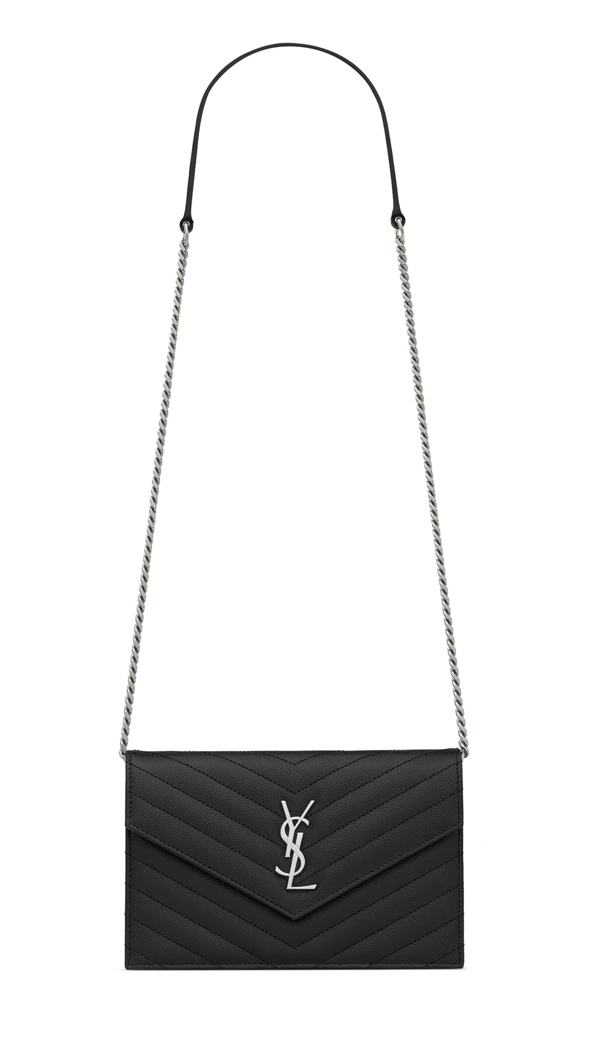 Cassandre Matelassé Envelope Chain Wallet in Gain de Poudre Embossed Leather - Black
