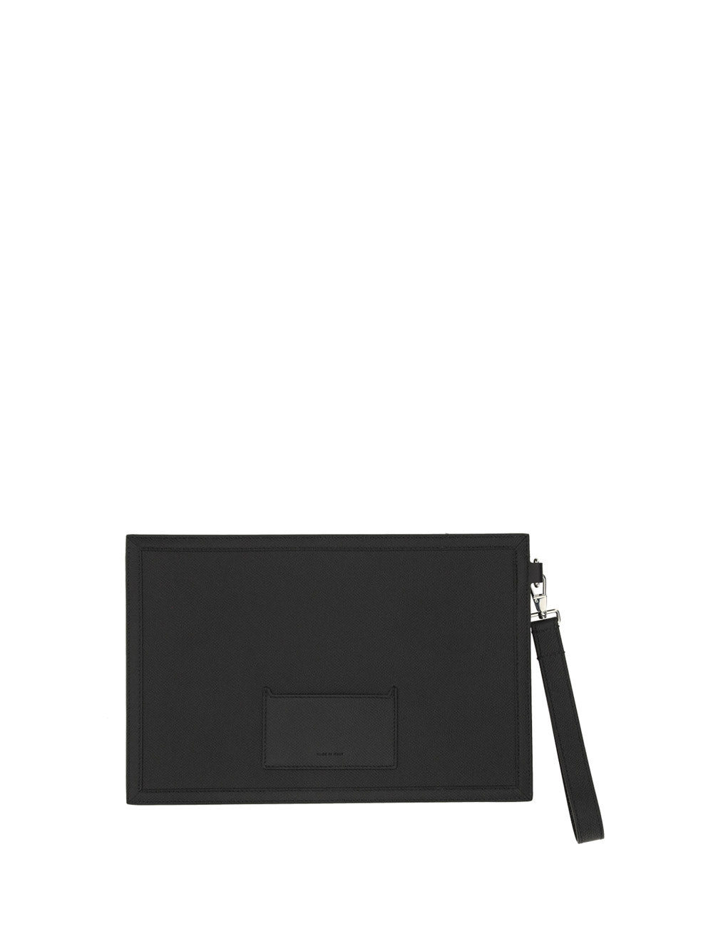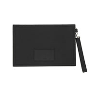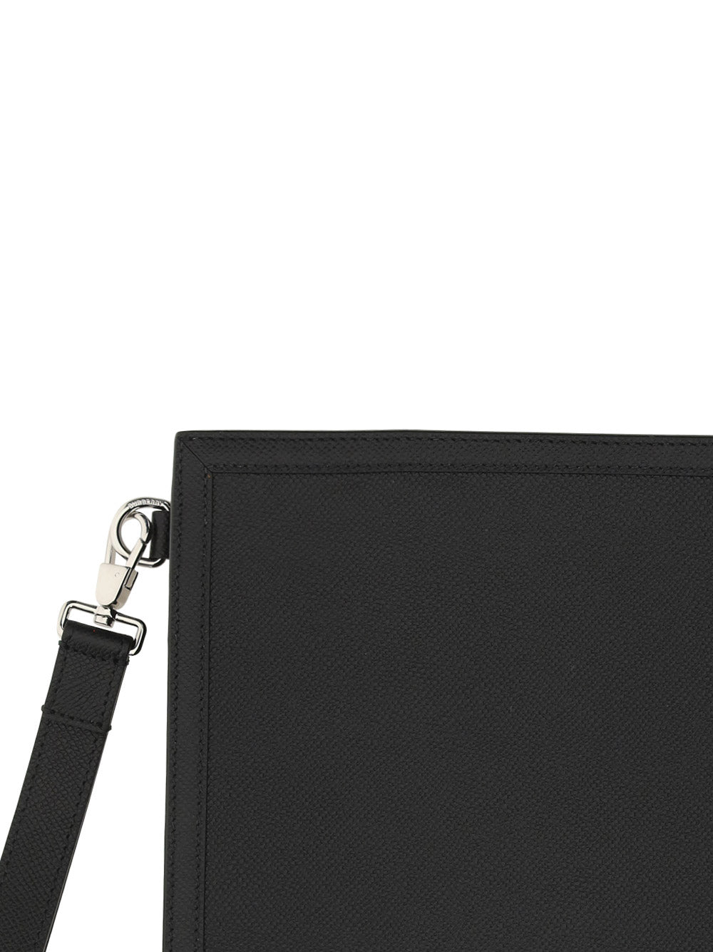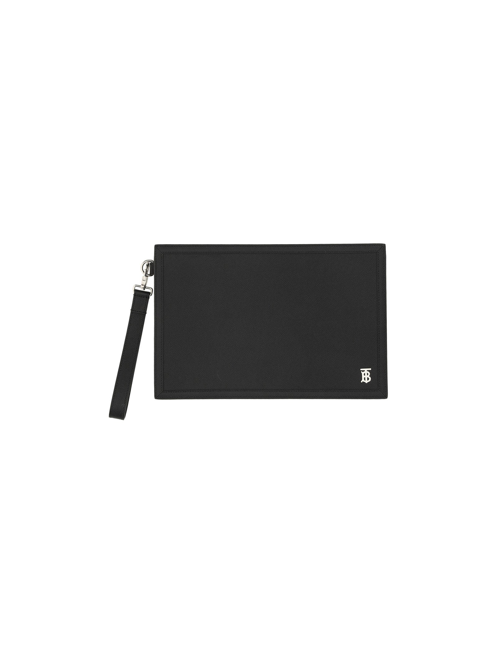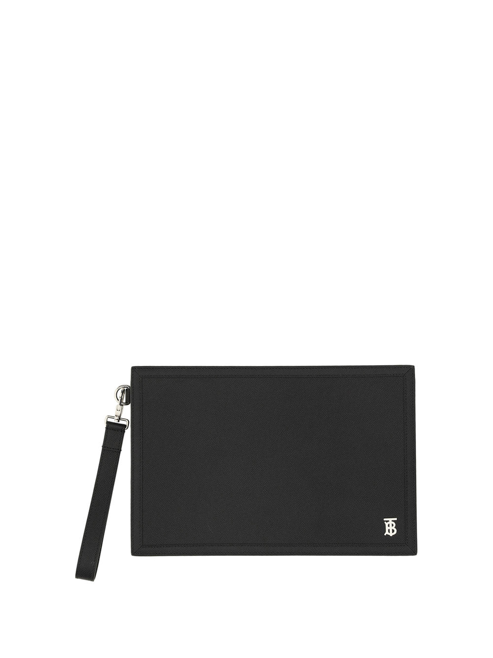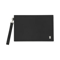 Calfskin Frame Clutch Bag by Burberry, grained leather design, silver-plated TB plaque embossed applique on front, removable wrist strap to carry it by hand, concealed zipper top closure.