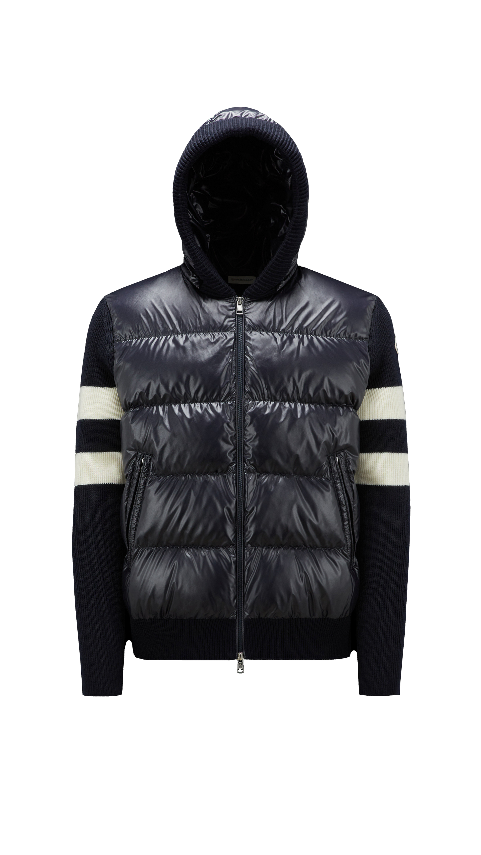 Padded Wool Cardigan with Arm Bands - Night Blue/White