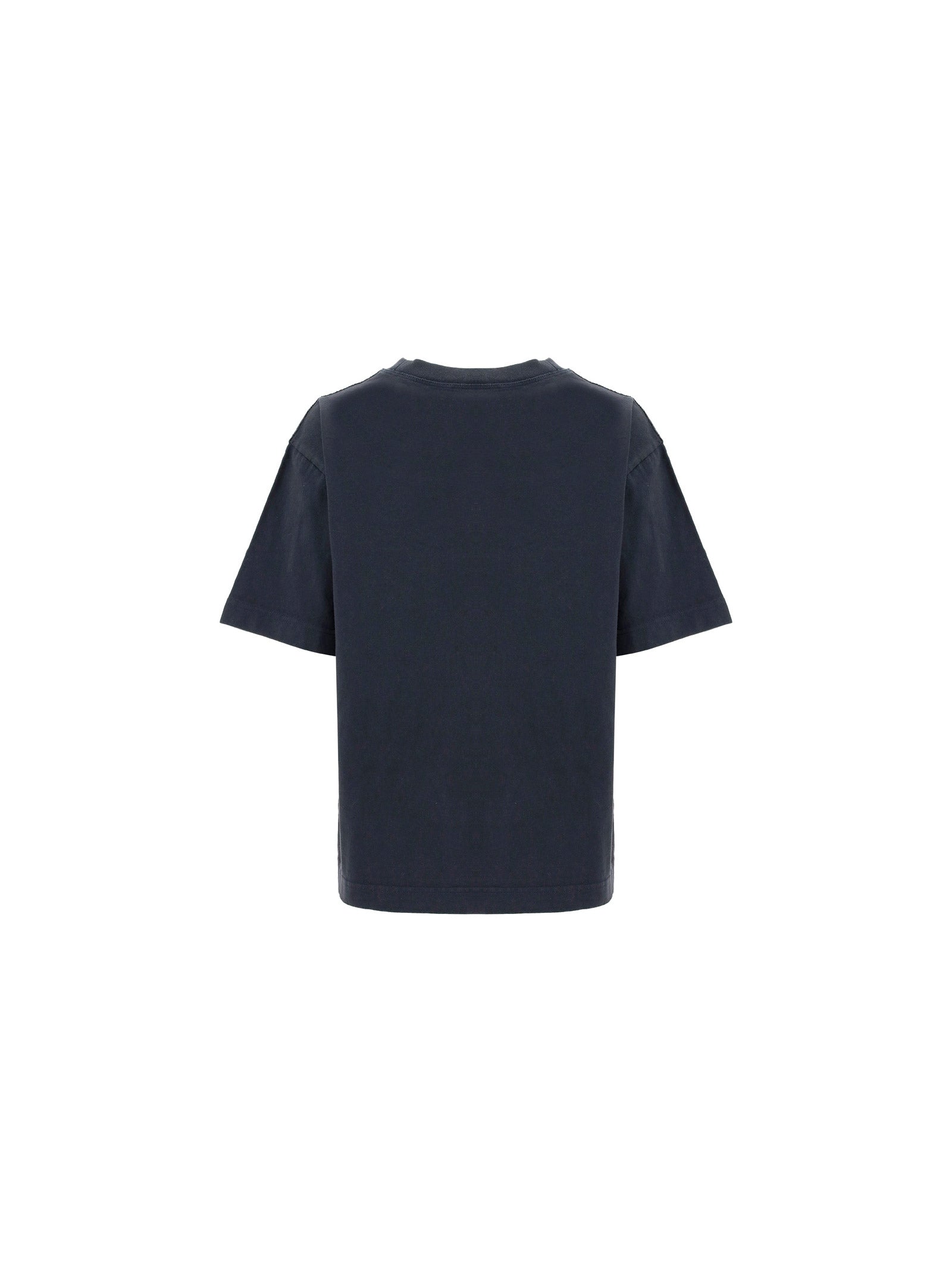 Woman's Cotton T-Shirt by Acne Studios, ribbed crew neck, an iconic brand monogram printed in contrasting colours on the front, a monochrome pattern, and a regular fit.