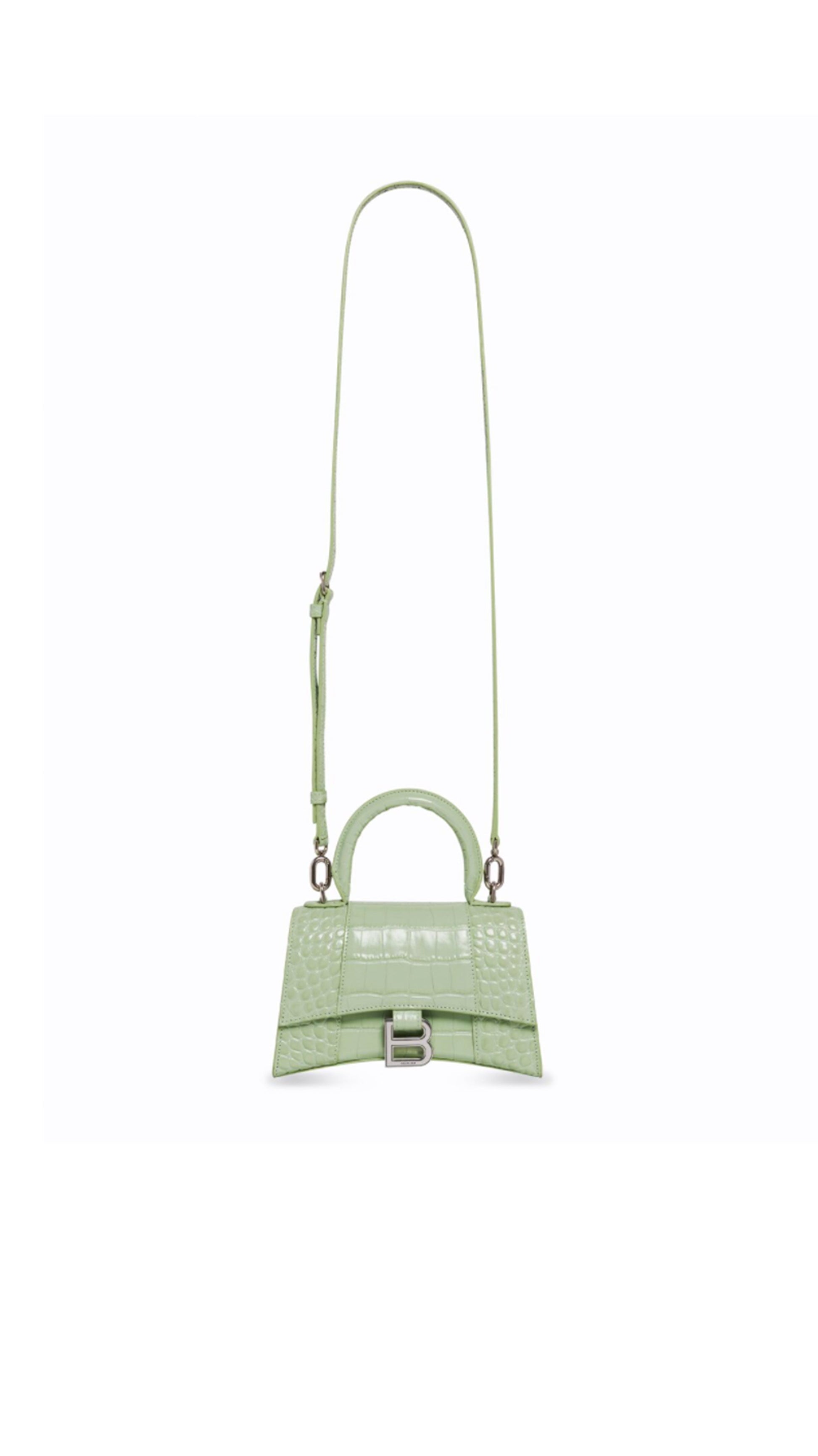 Hourglass XS Handbag In Shiny Crocodile Embossed Calfskin - Light Green