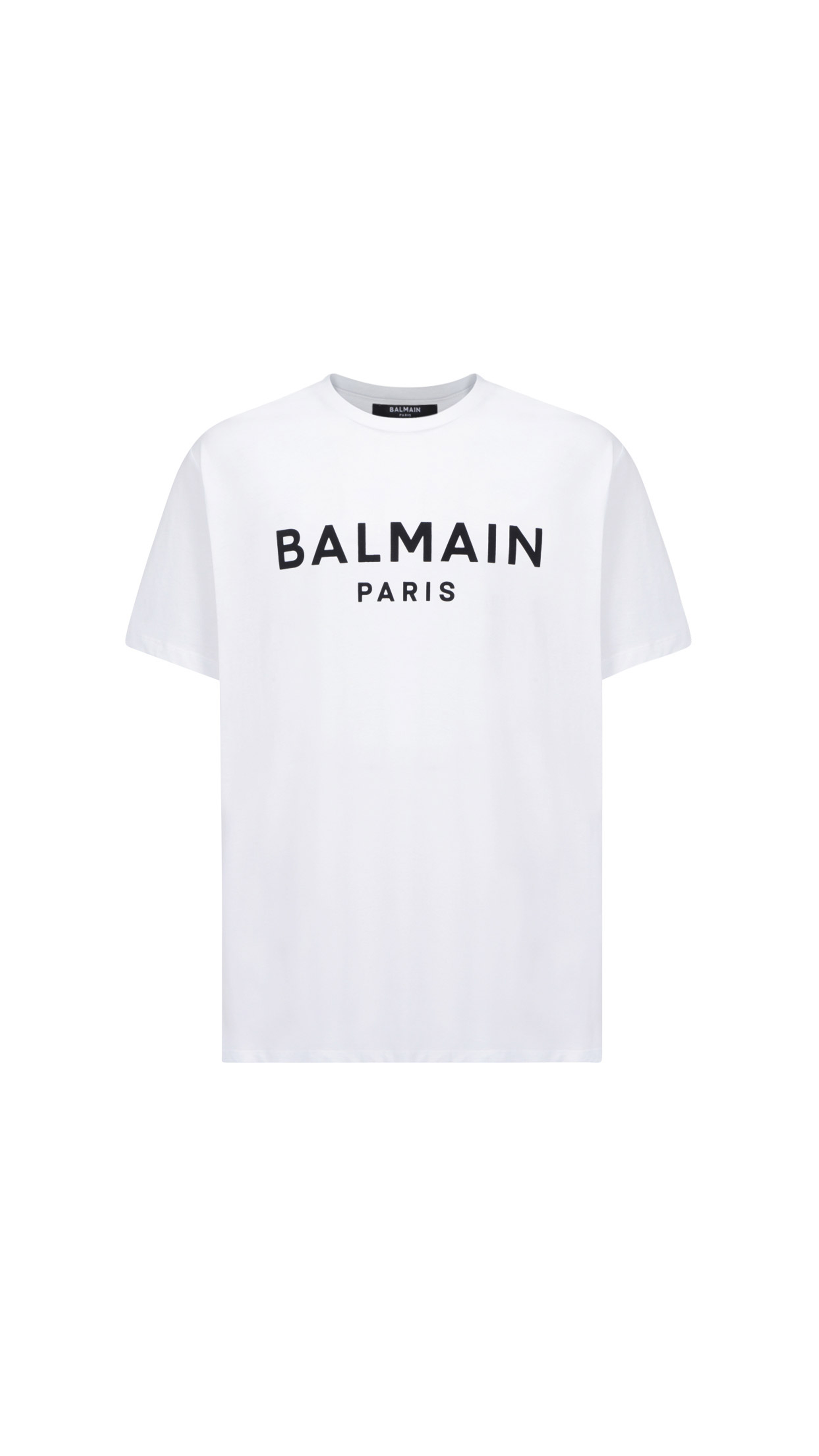 Cotton T-Shirt with Balmain Paris Logo Print - White.