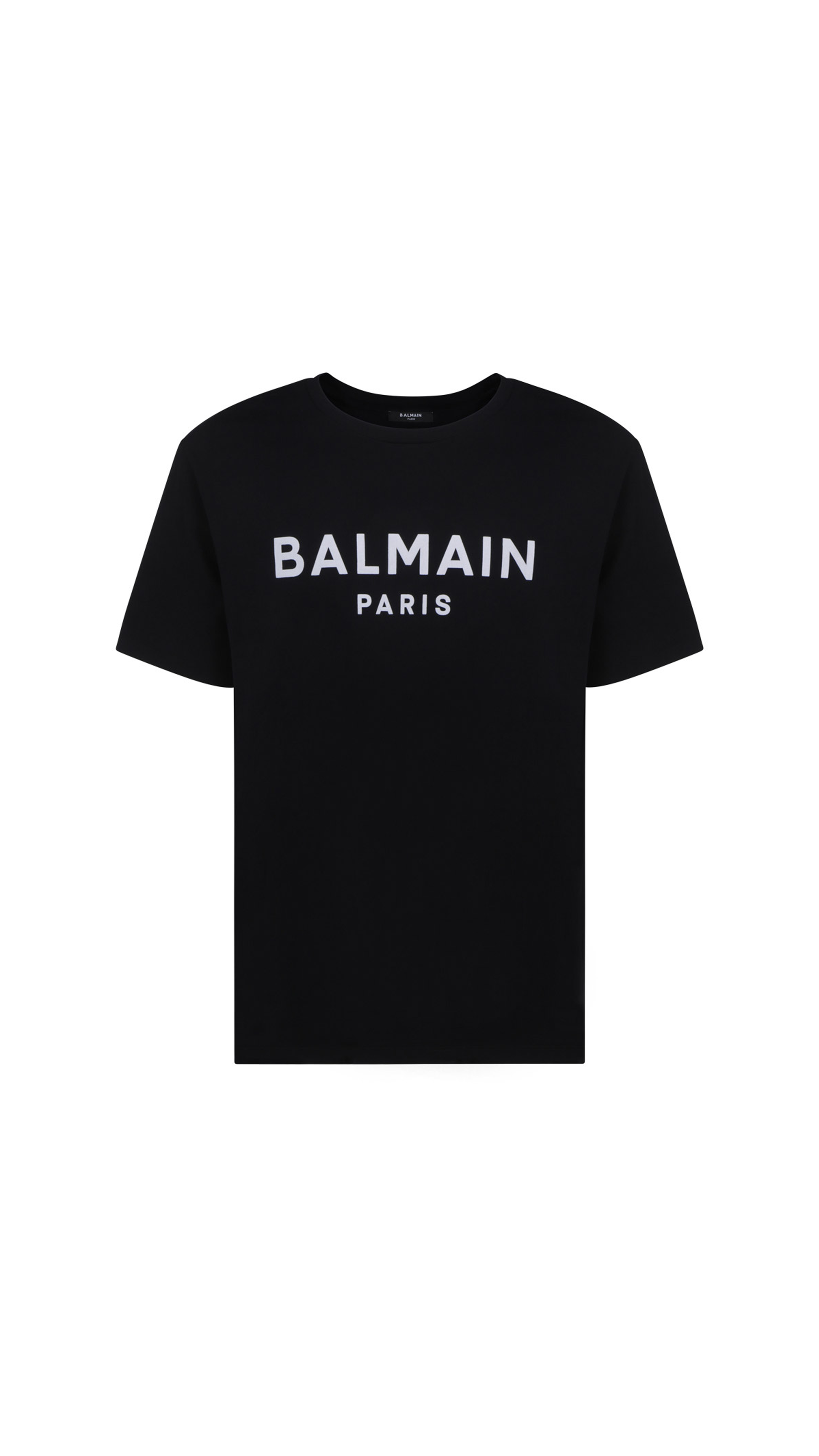 Cotton T-Shirt with Balmain Paris Logo Print - Black.