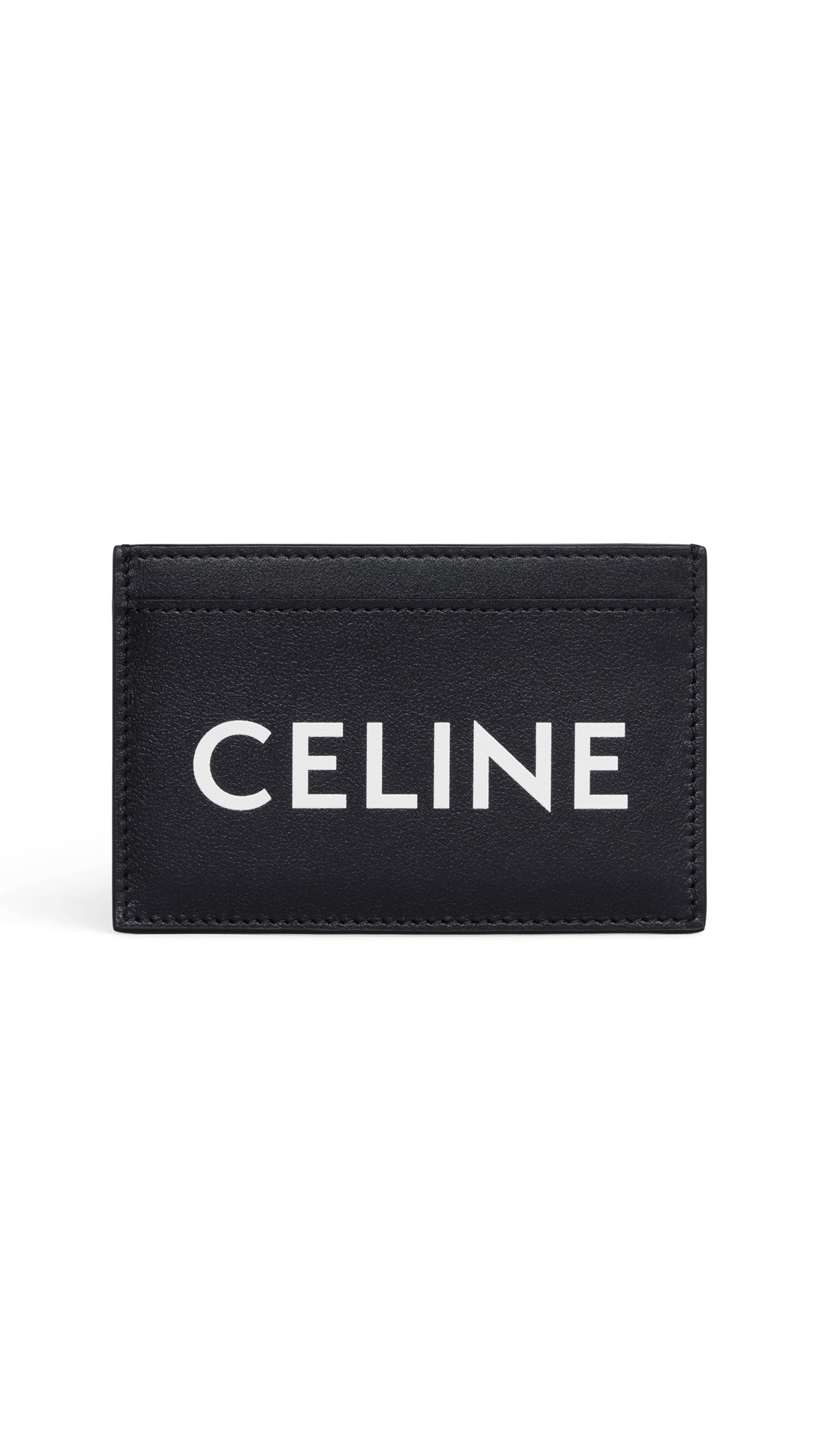 Card Holder in Smooth Calfskin with Celine Print - Black/White
