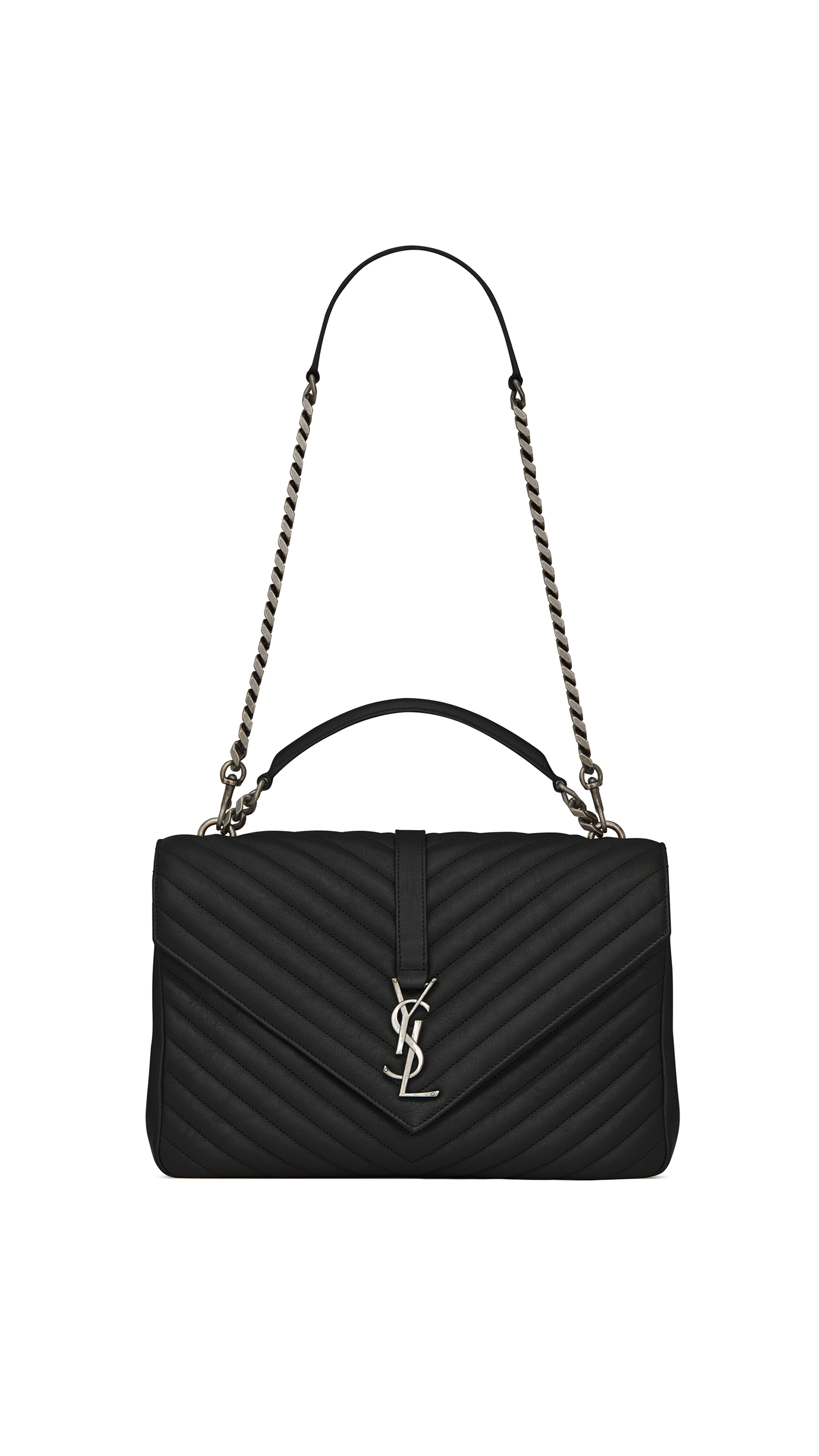College Large Chain Bag In Quilted Leather - Black / Silver