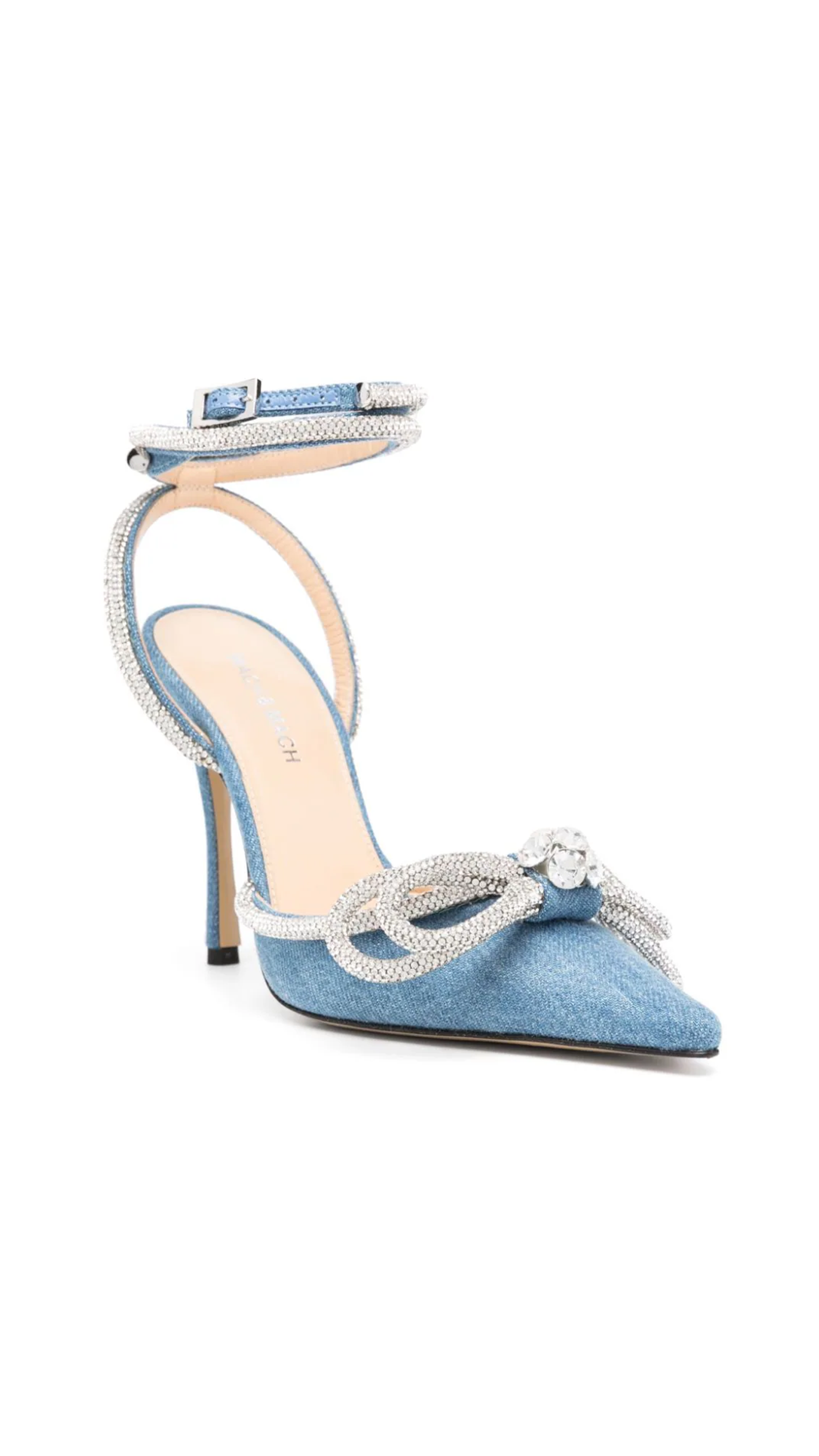 Crystal Double Bow Denim Slingback Pump - Blue