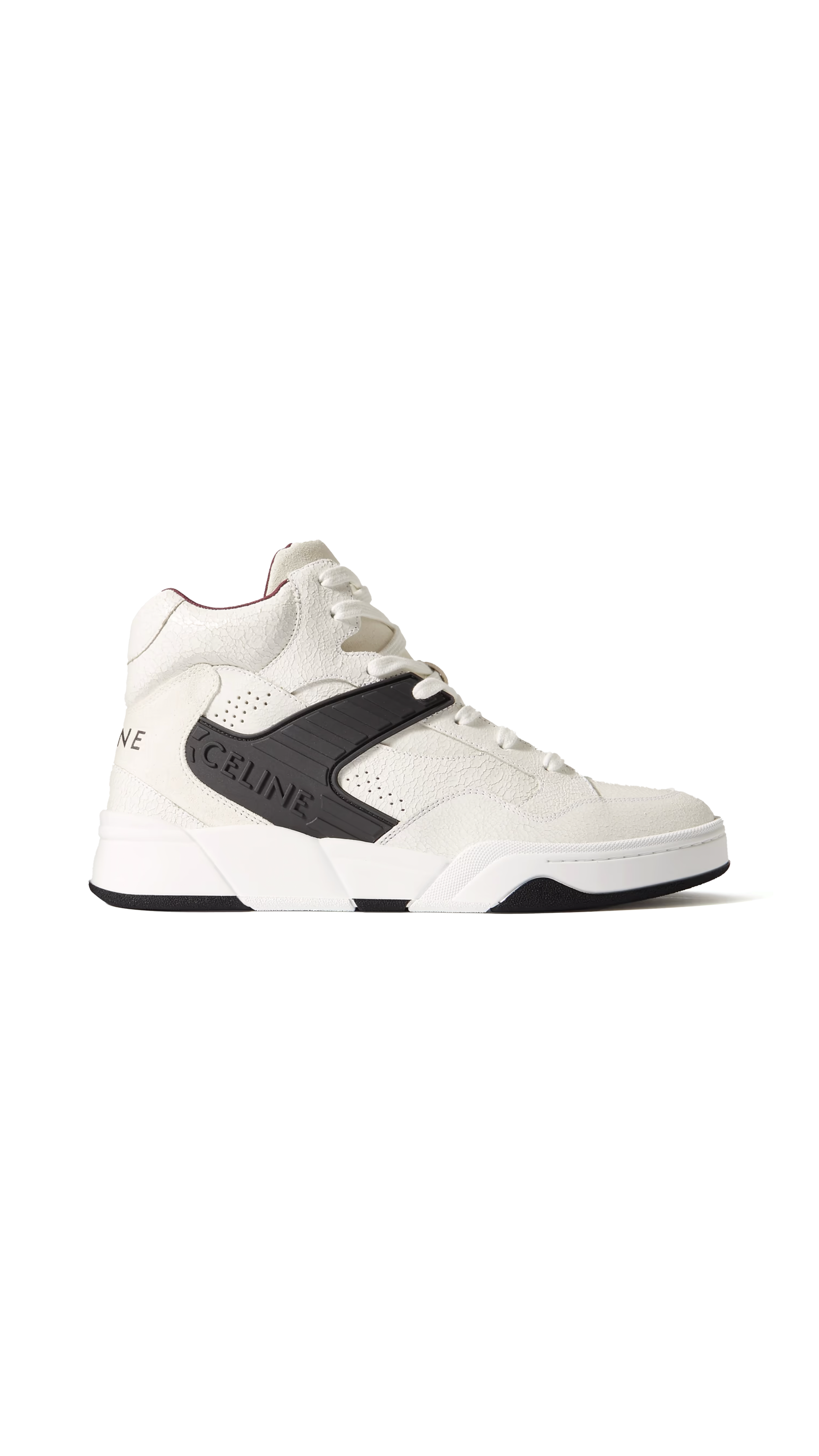 CT-06 Rubber-Trimmed Cracked Leather High-Top Sneakers - White/Black