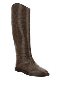 FF Karligraphy Motif Boots In Crocodile-Embossed Leather - Brown