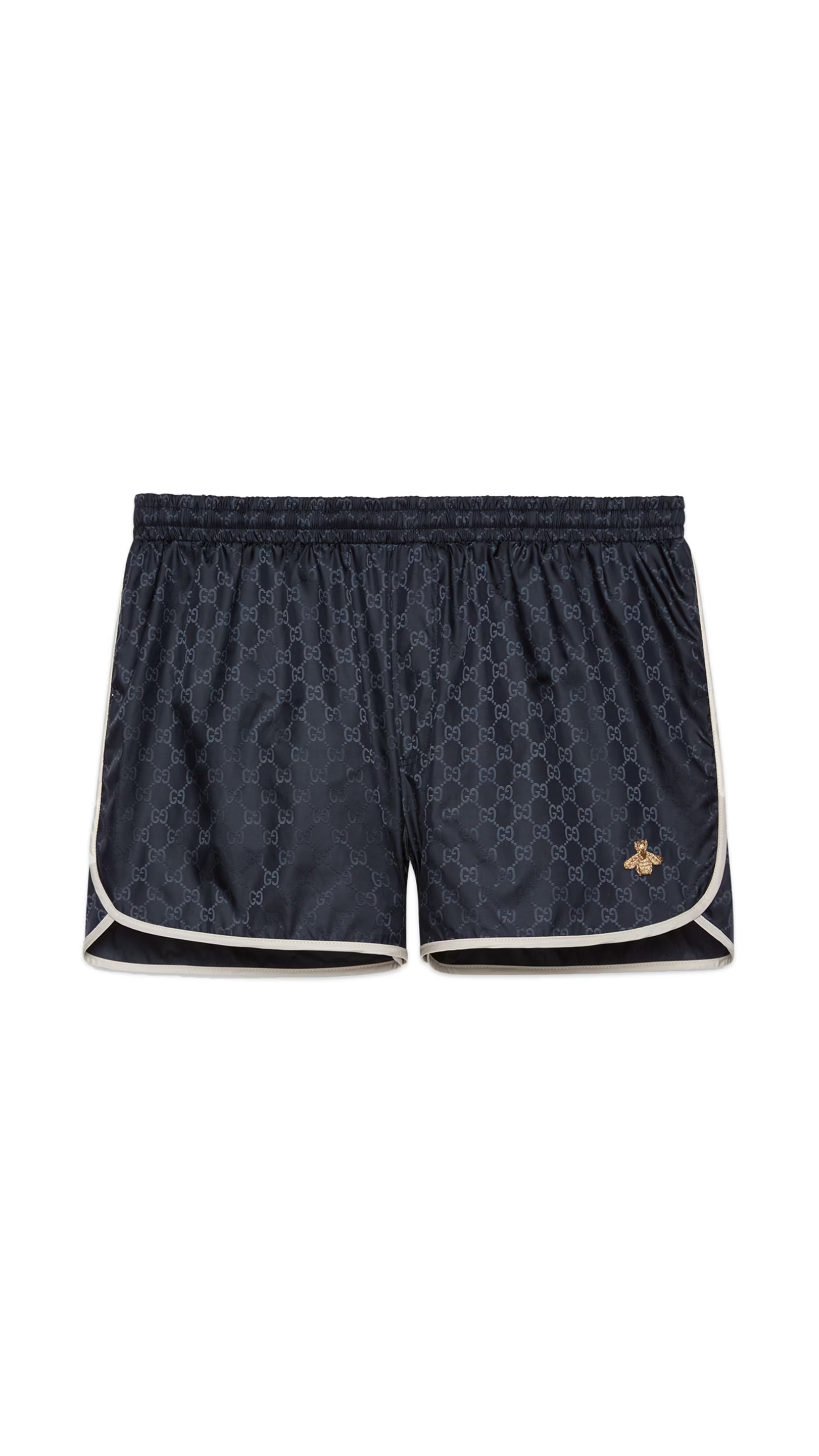 GG Nylon Swim Shorts with Bee - Blue/Ivory