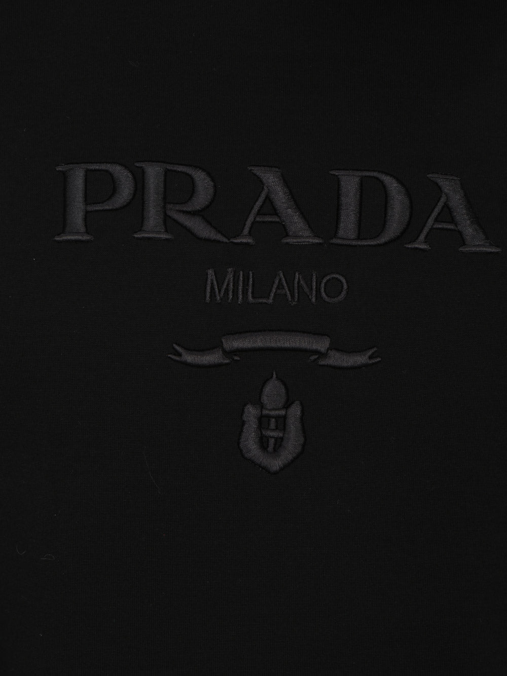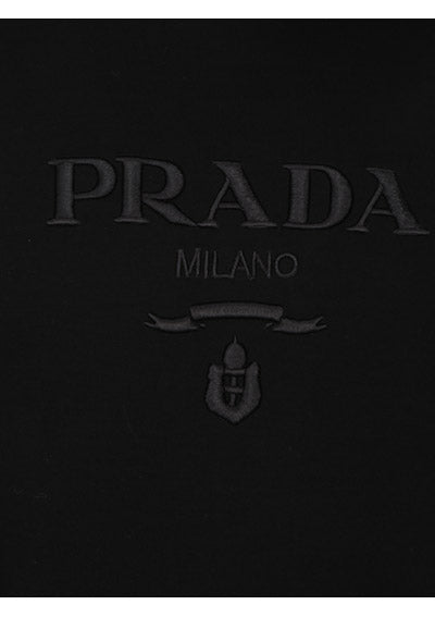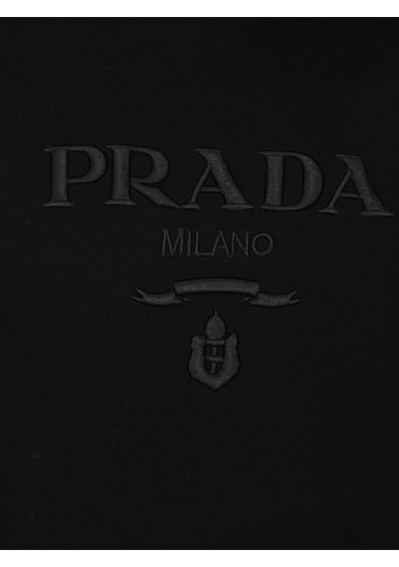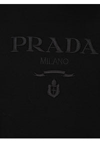 Men's Cotton Hoodie by Prada, maxi iconic brand monogram embossed tone-on-tone patch on front, oversize fit.