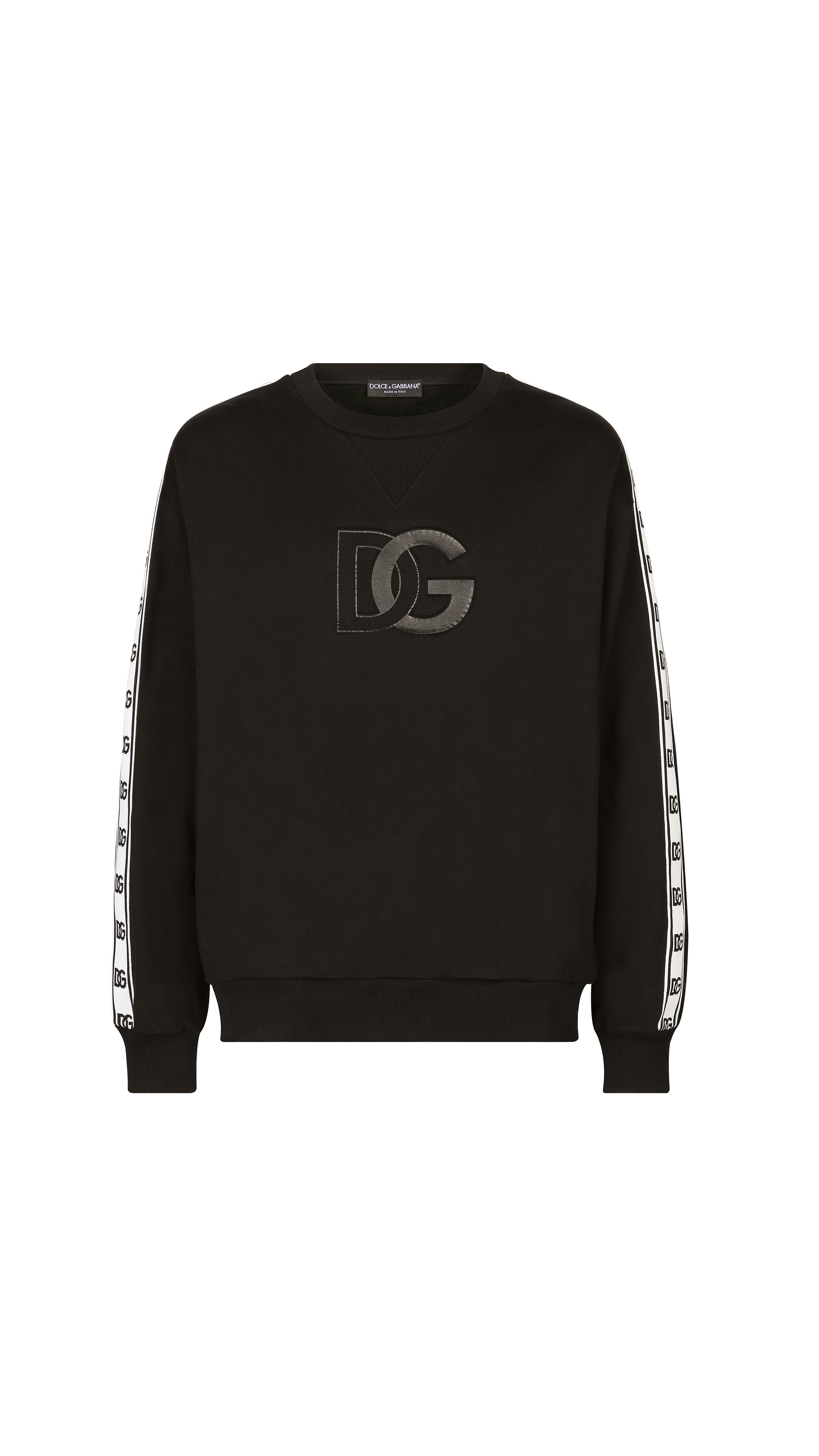 Jersey Sweatshirt with Bands and Embossed DG Logo - Black