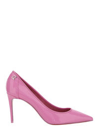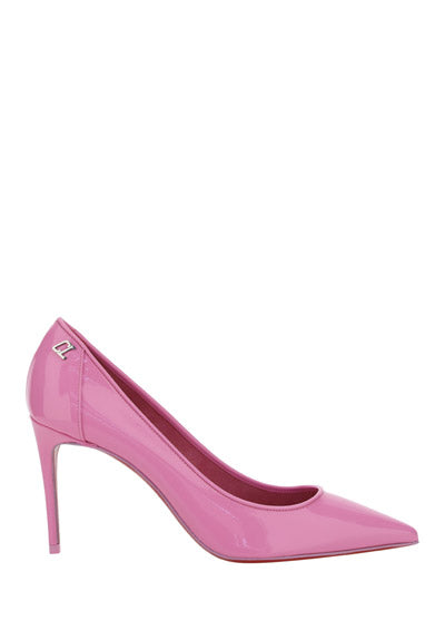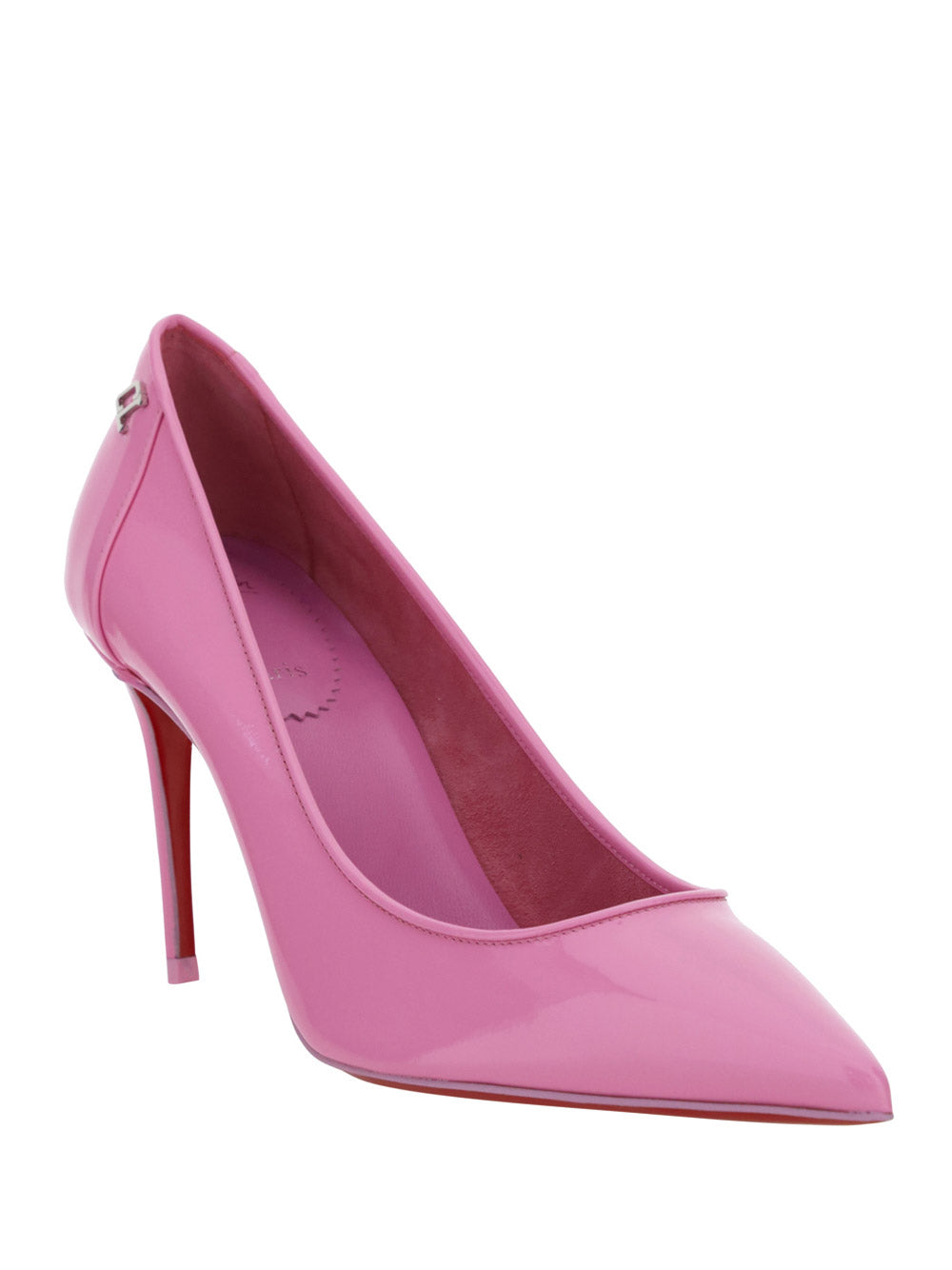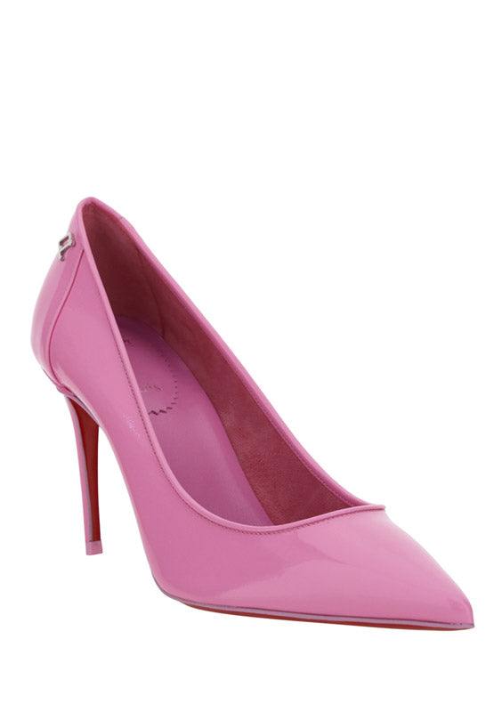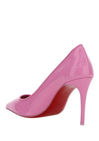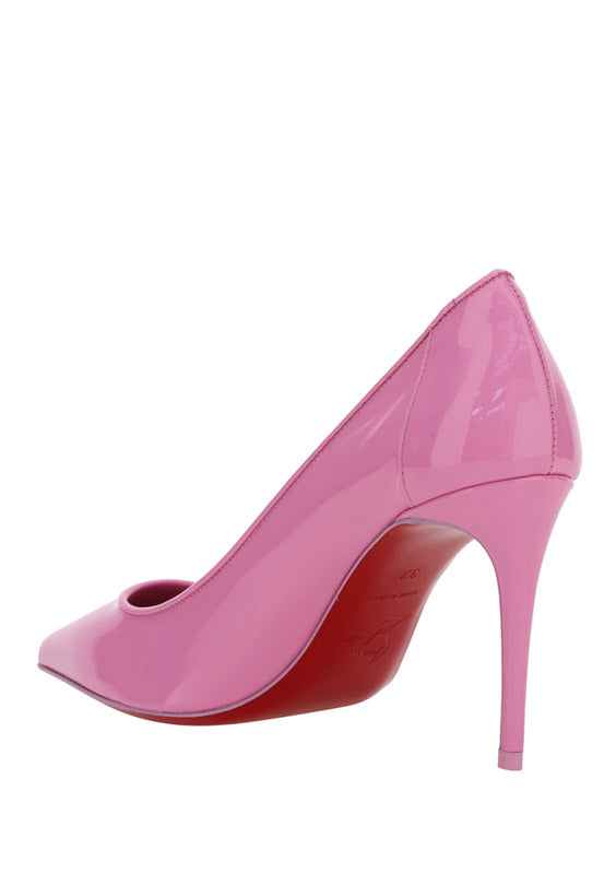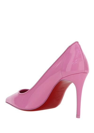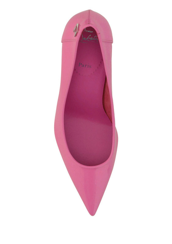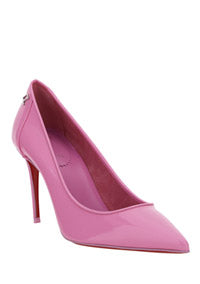Calfskin Kate Pump by Christian Louboutin, pointed toe, stiletto heel, contrasting embossed brand monogram at heel, branded insole.