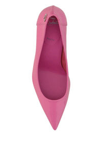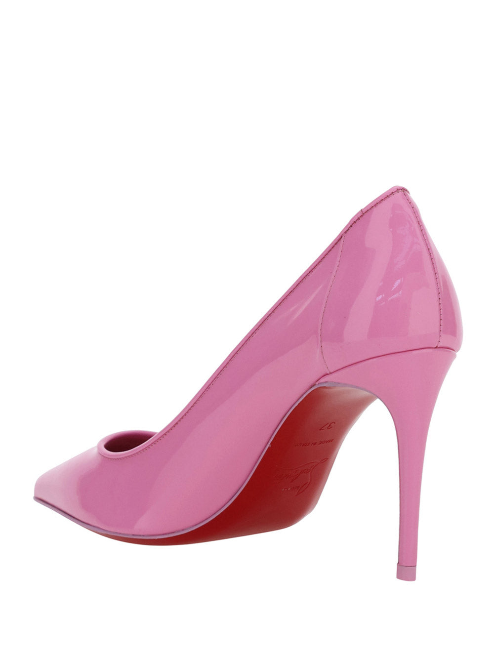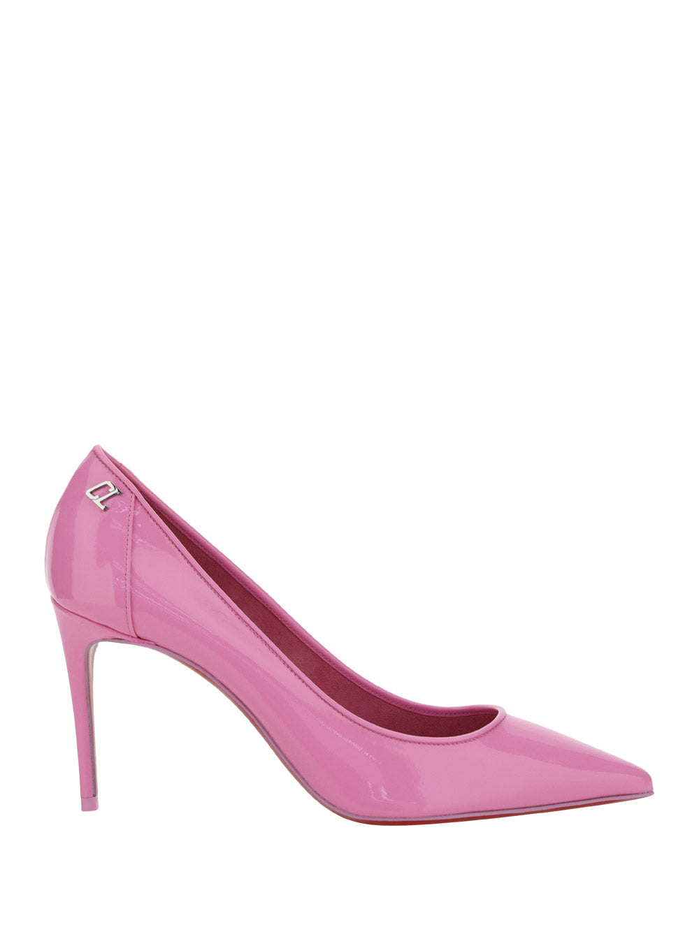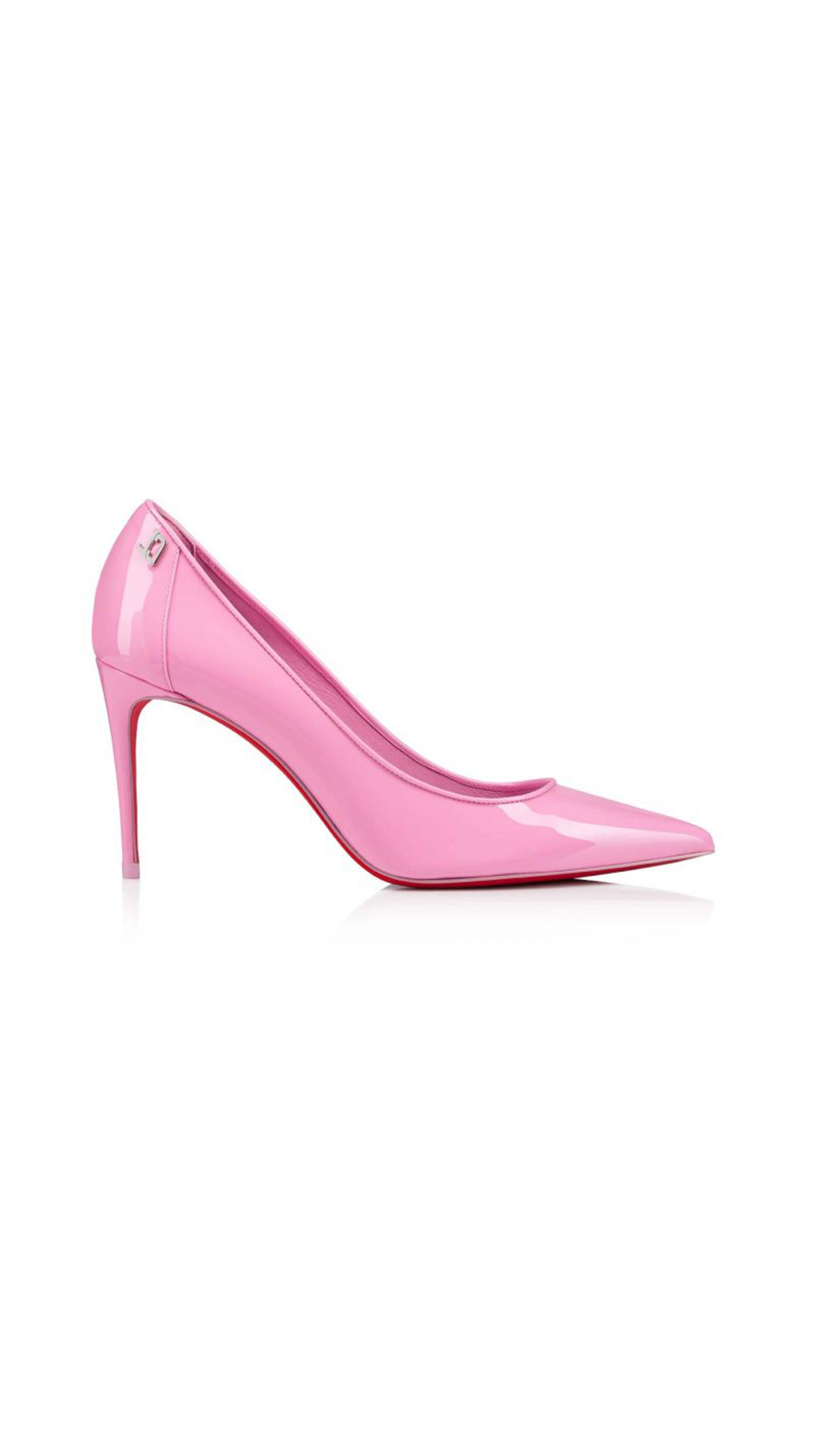 Calfskin Kate Pump by Christian Louboutin, pointed toe, stiletto heel, contrasting embossed brand monogram at heel, branded insole.