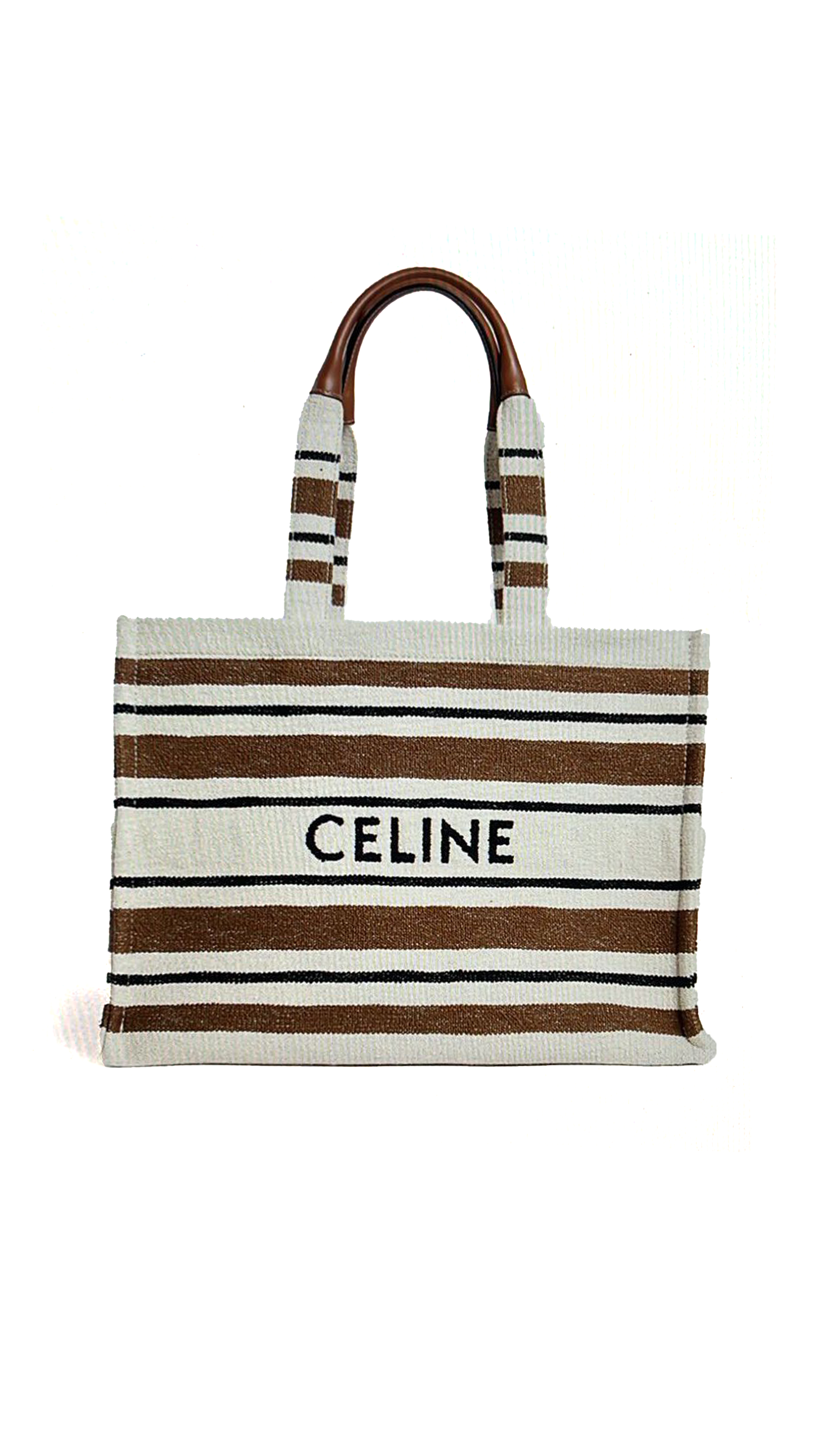 Large Cabas Thais in Stripe Textile Triomphe Print and Calfskin - White/Brown/Black