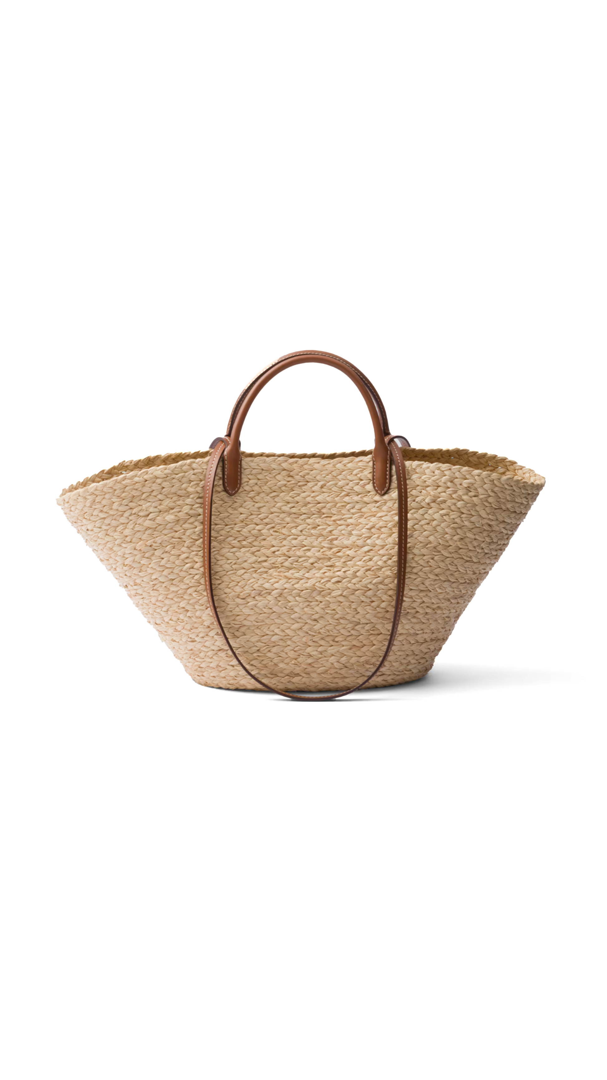 Large Raffia and Leather Shopping Bag - Beige/Cognac
