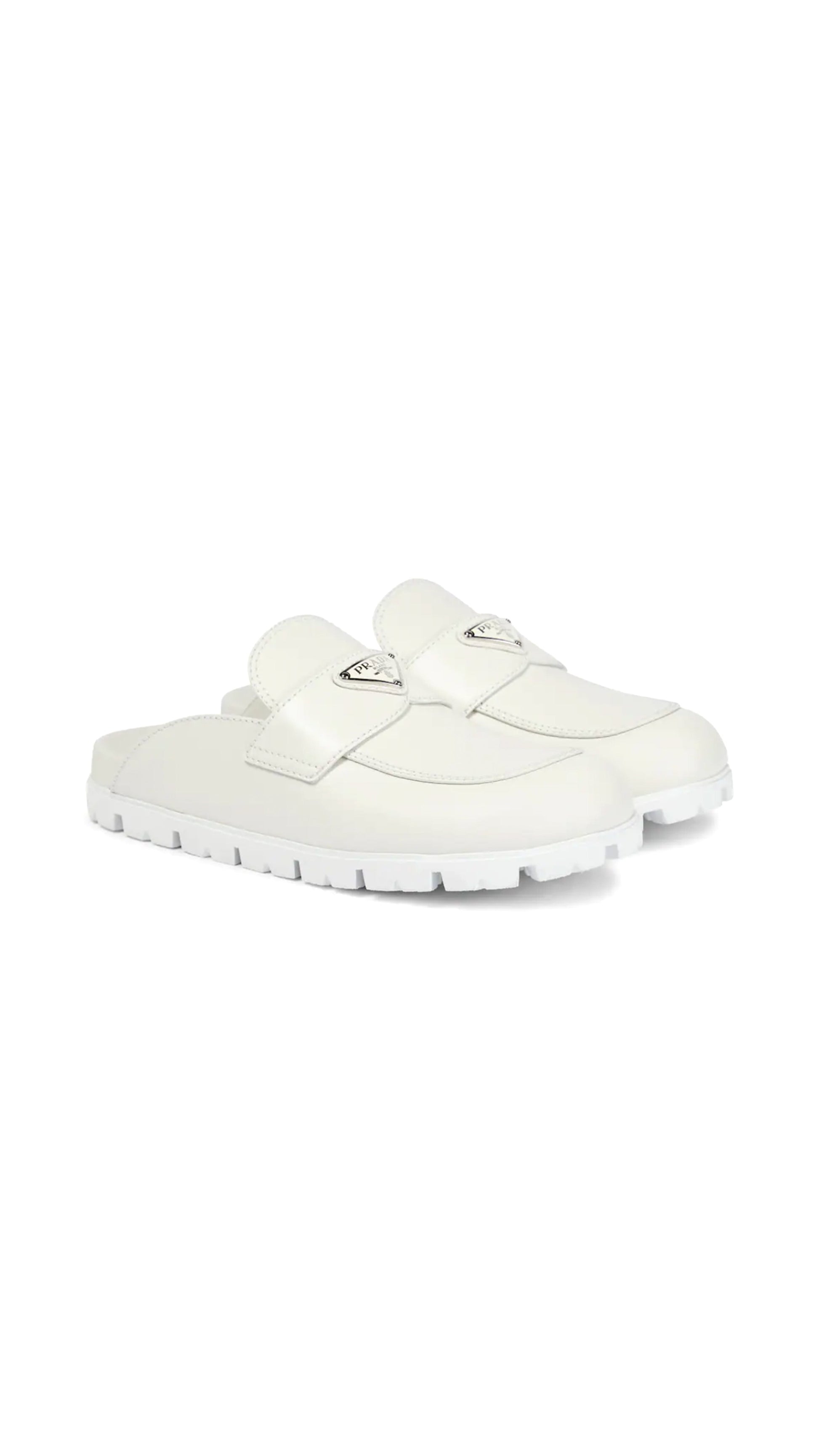 Leather Sabot Mules - White