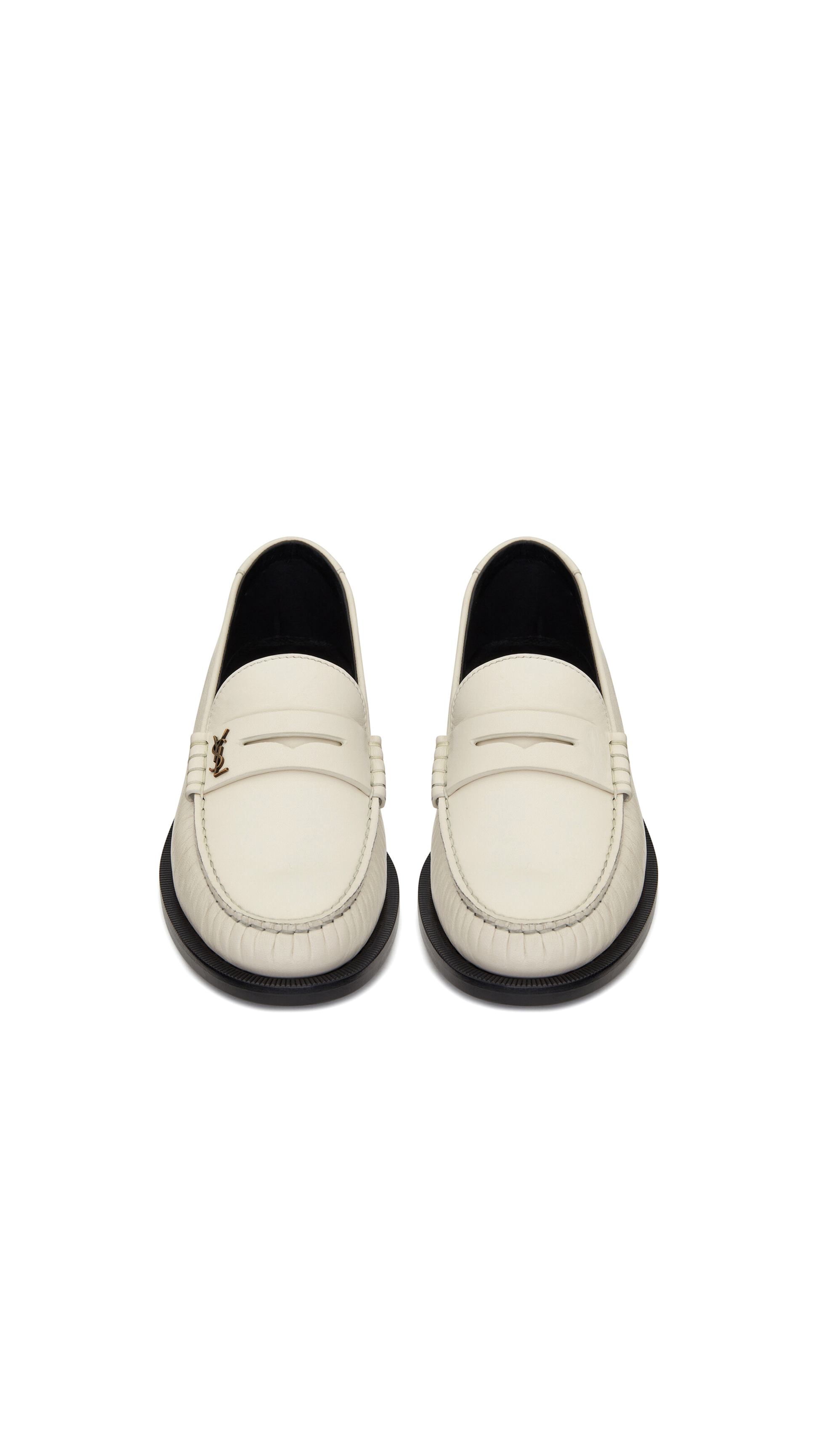 Le Loafer Monogram Penny Slippers In Smooth Leather - Pearl