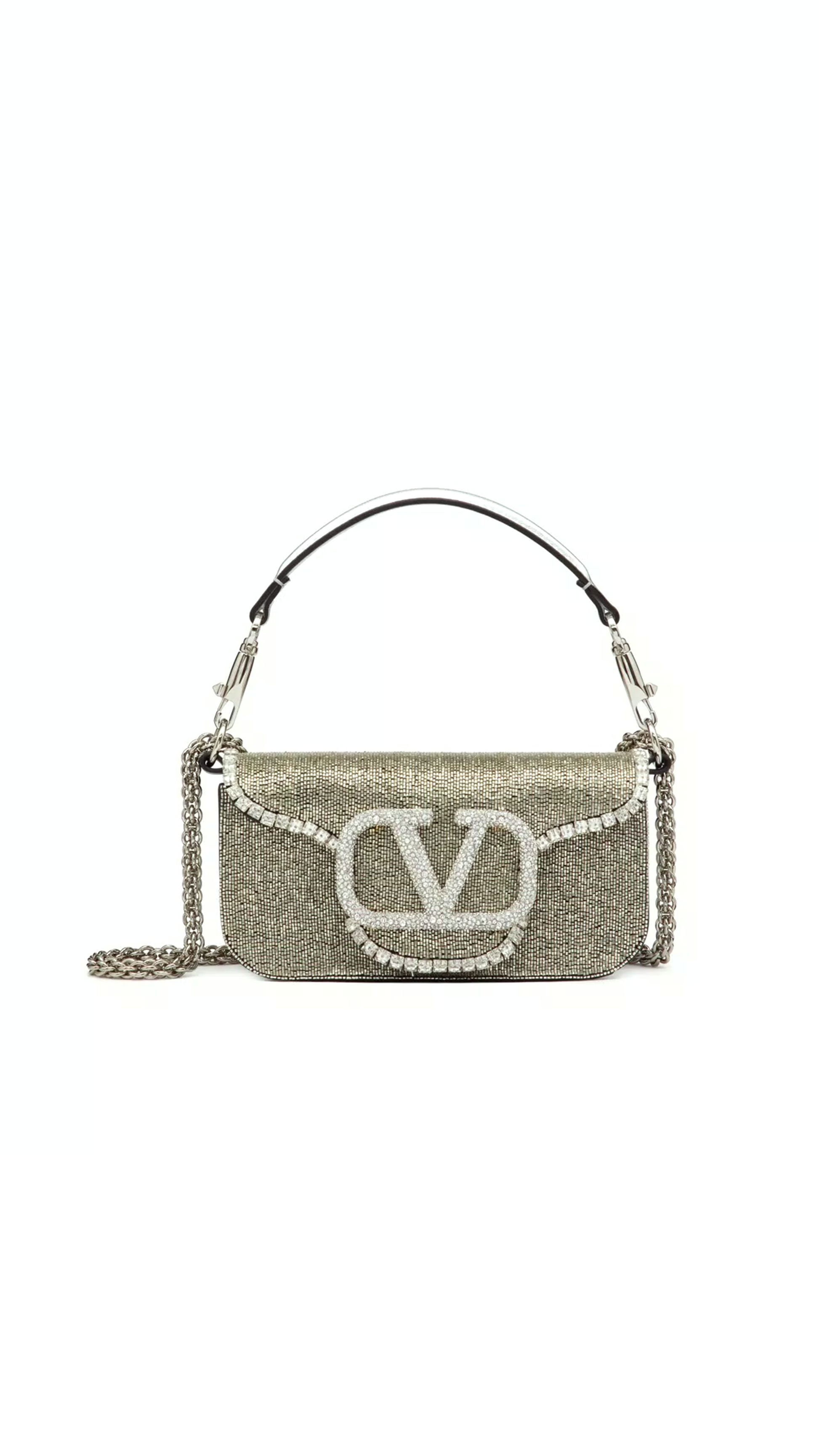 Locò Embroidered Small Shoulder Bag - Silver/Crystal