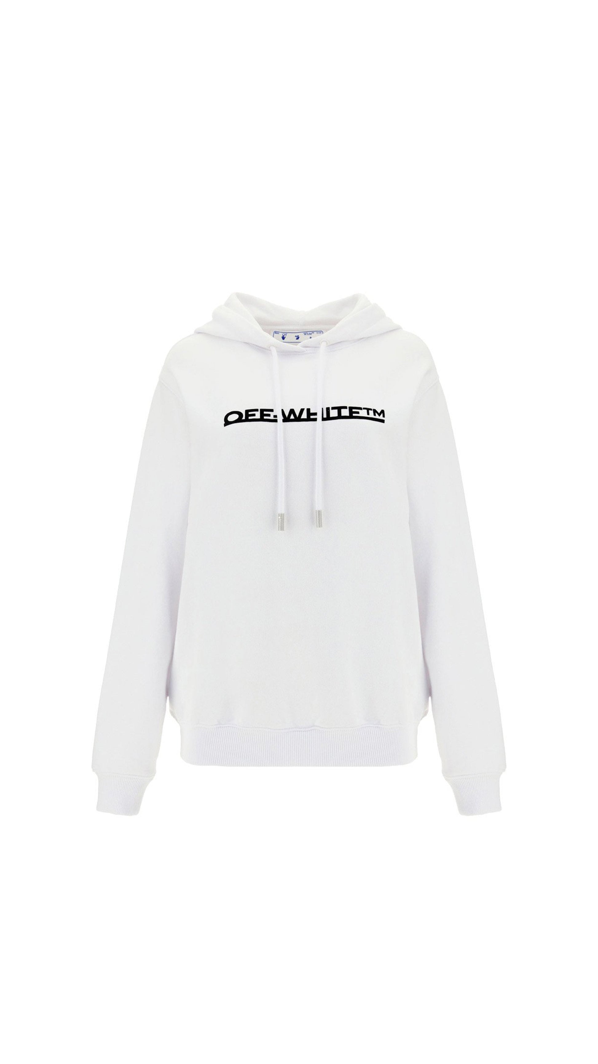 Cotton Hoodie by Off-White, adjustable drawstring hoodie, kangaroo pocket on front, ribbed cuffs and bottom hem, contrast logo printed on front, oversize fit.