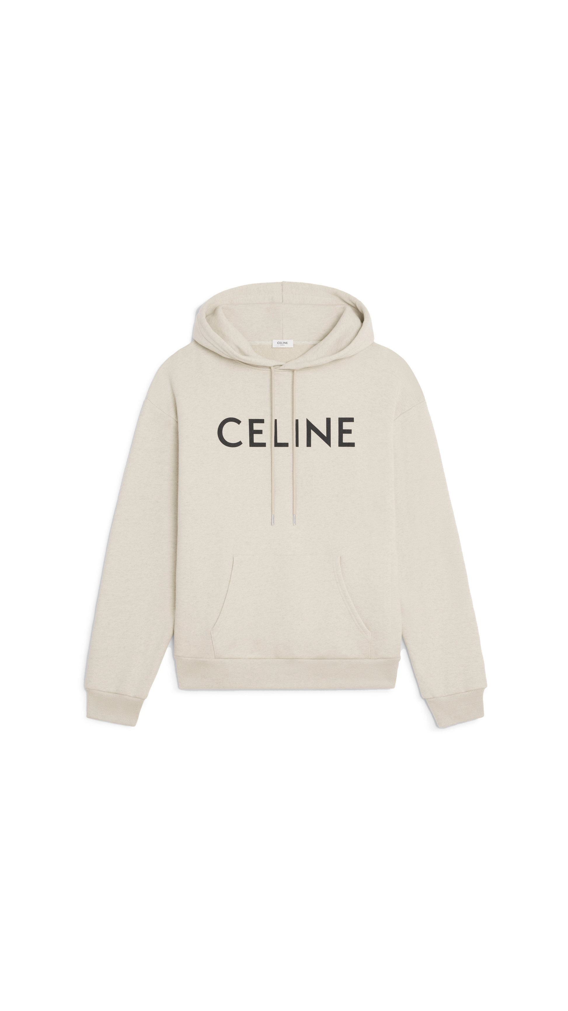 Loose Hoodie in Cotton Fleece - Cream/Black