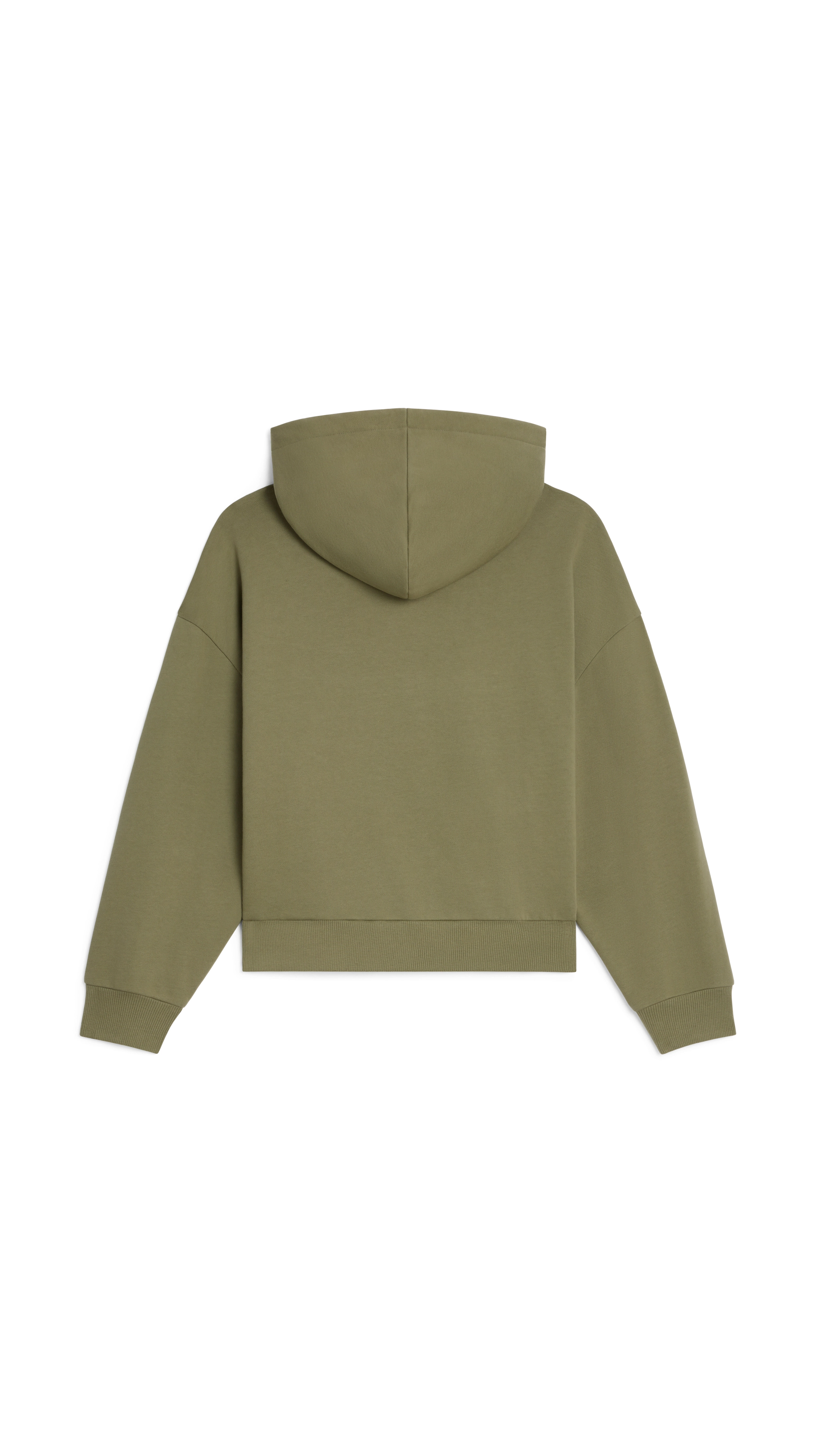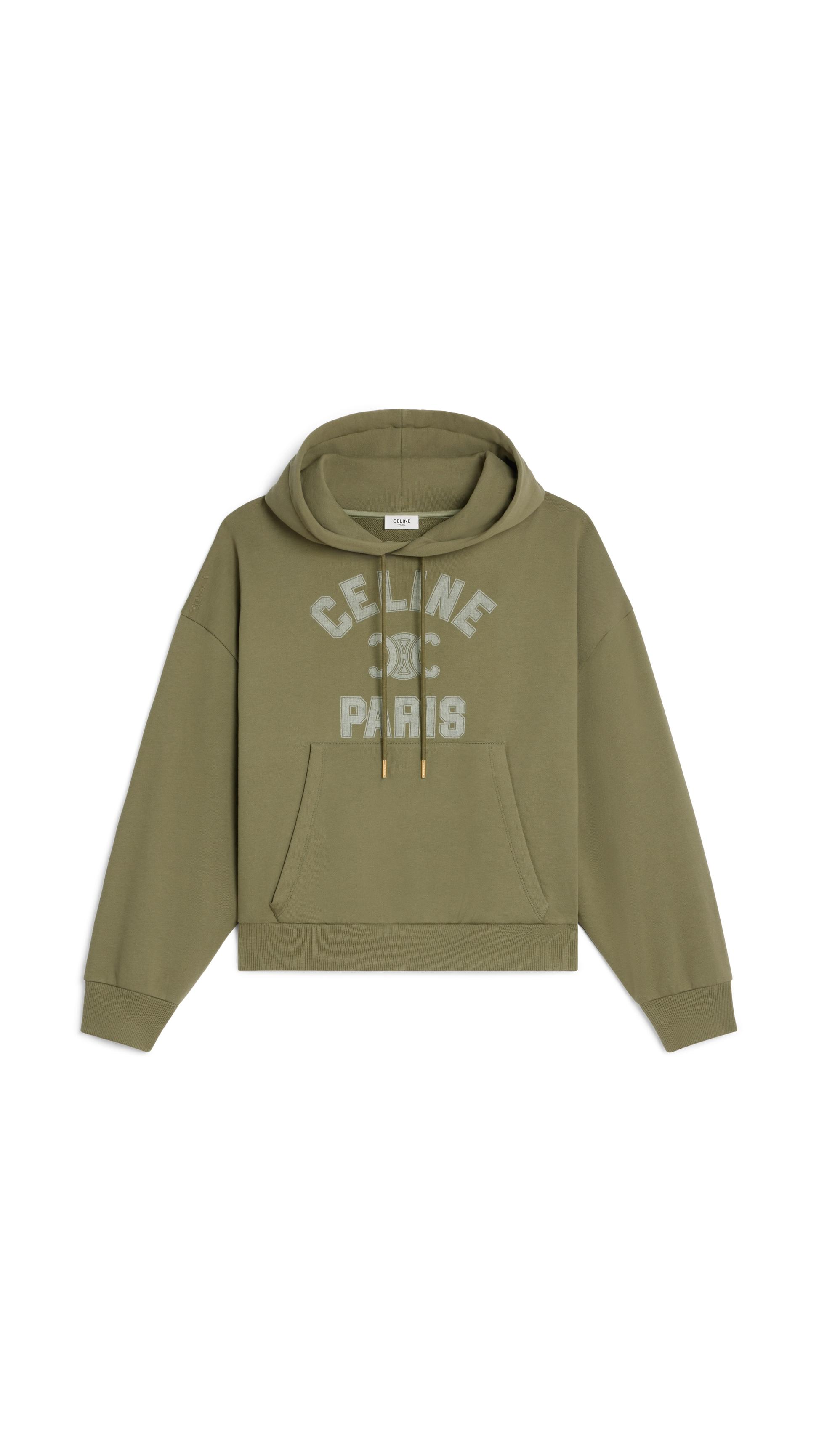 Loose Hoodie in Cotton Fleece - Khaki/Off White