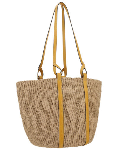 Large Basket in Fair Trade Paper & Shiny Calfskin - Natural / Yellow