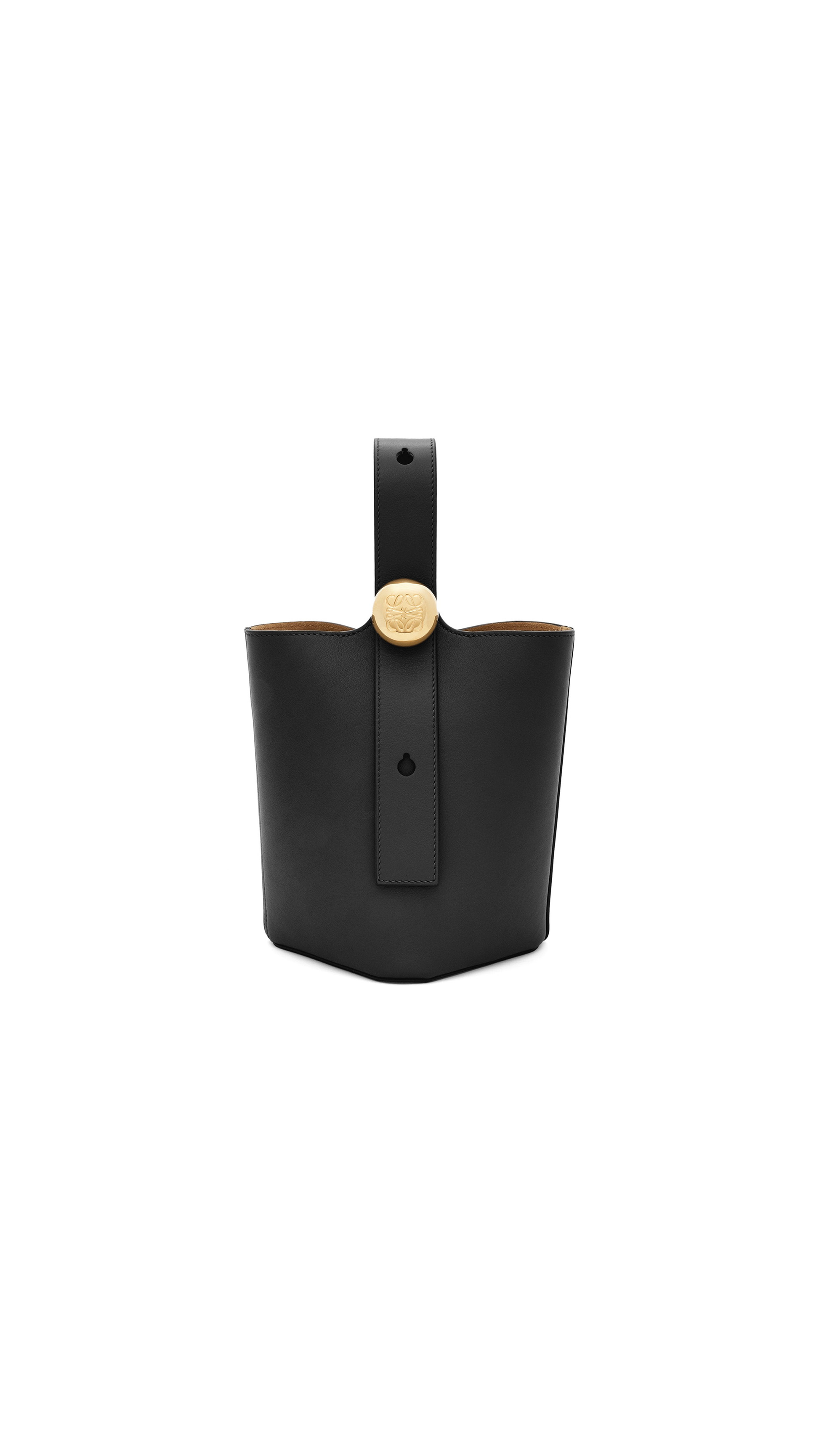 Mini Pebble Bucket Bag In Mellow Calfskin - Black