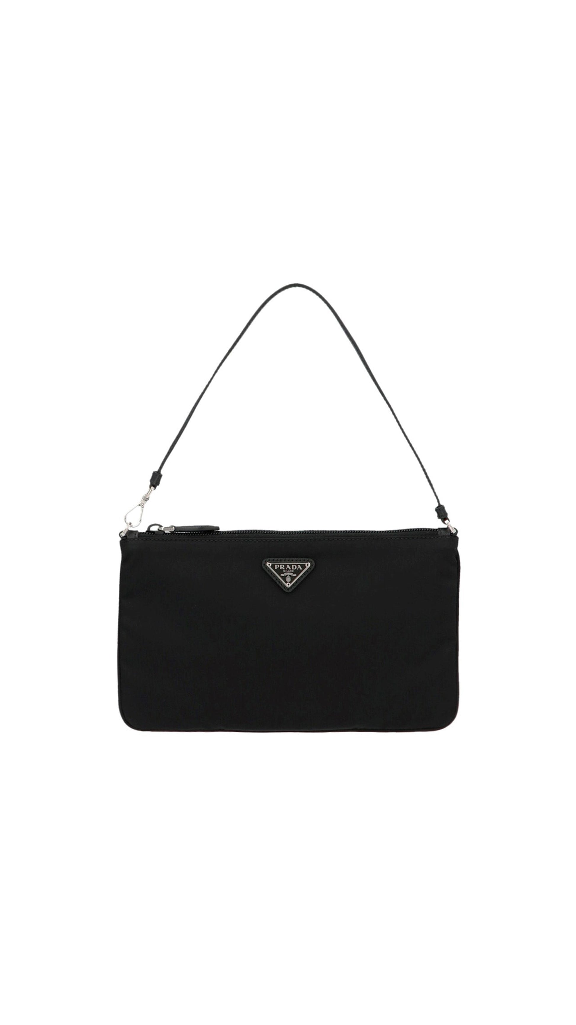 Nylon Shoulder Bag by Prada, featuring a zipper fastening, a flat pattern, an iconic triangular logo plaque at the front and an adjustable slim handle