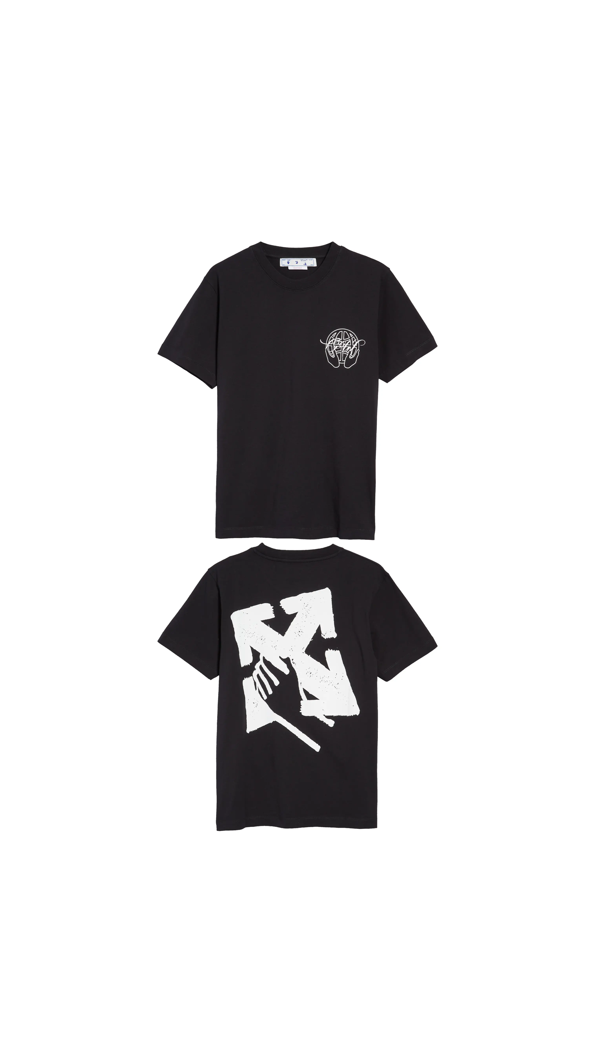 Hand Arrow Slim Fit Cotton Graphic Tee - Black/White