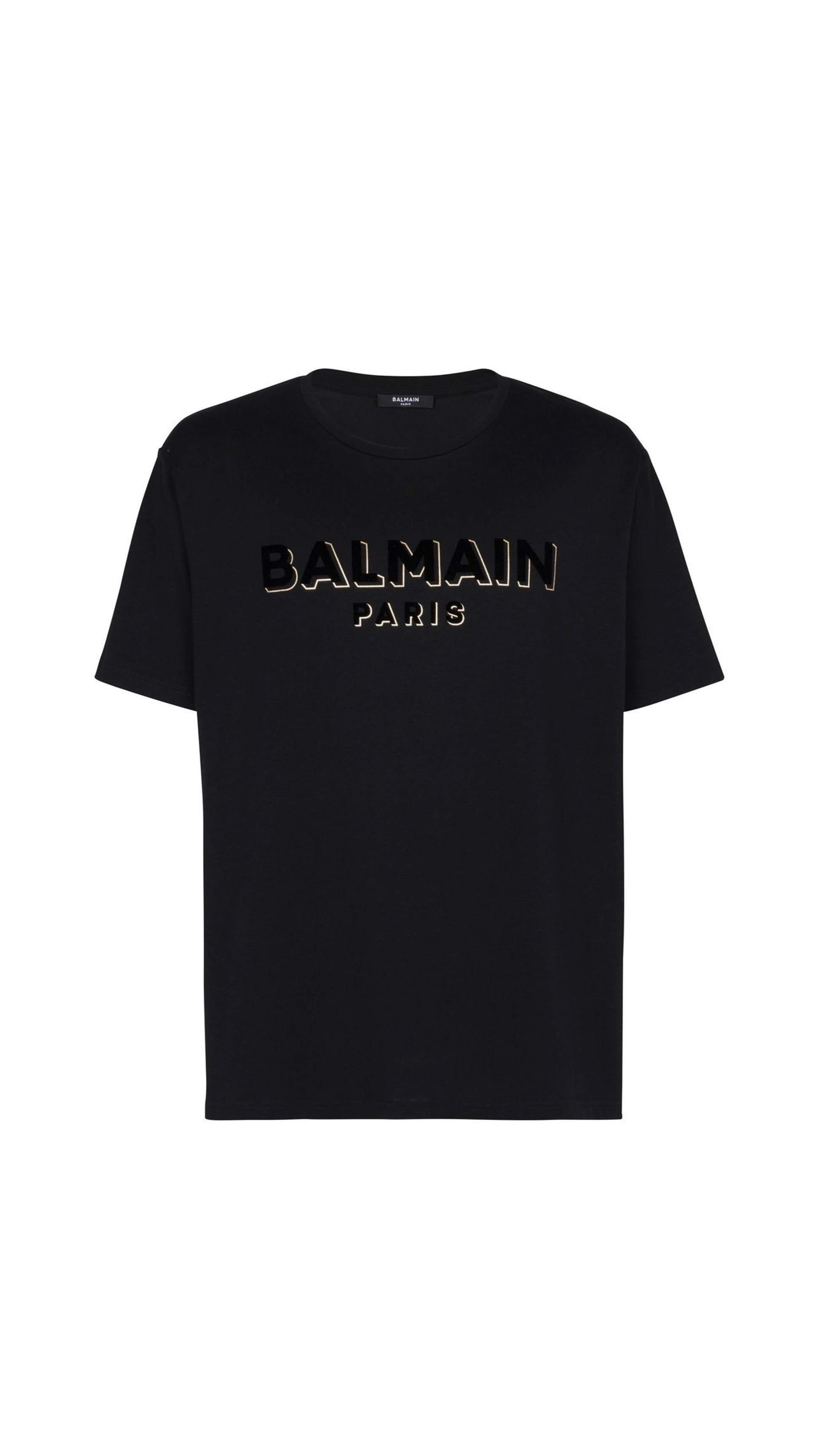 Oversized Cotton T-shirt with Textured Balmain Logo - Black