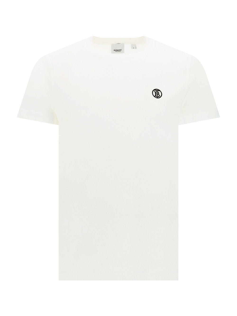 Men's Cotton Parker T-Shirt by Burberry, ribbed crew neck, iconic brand monogram contrasting on front, regular fit.