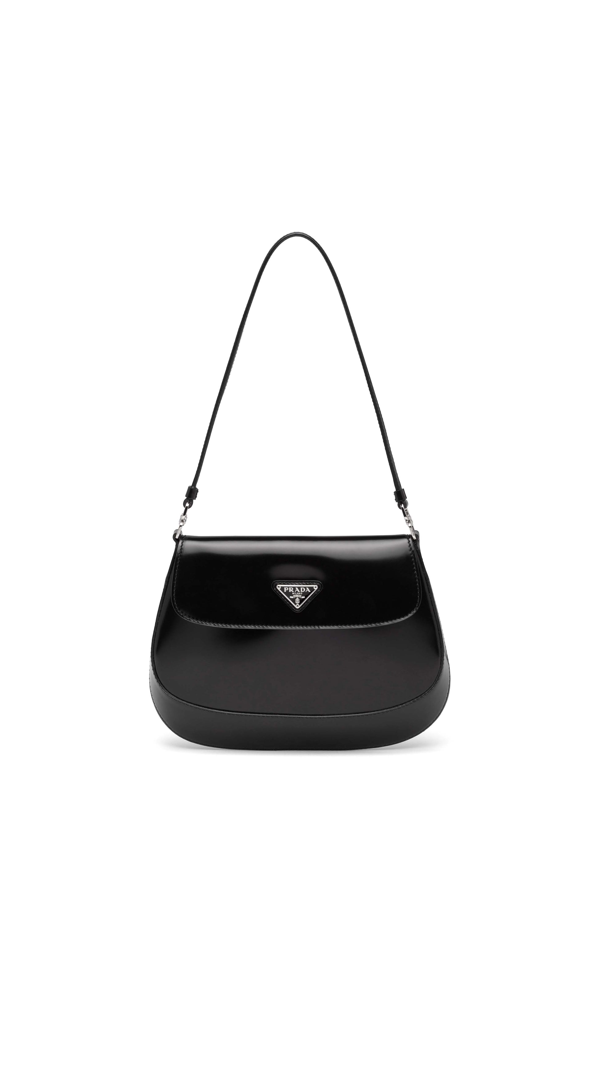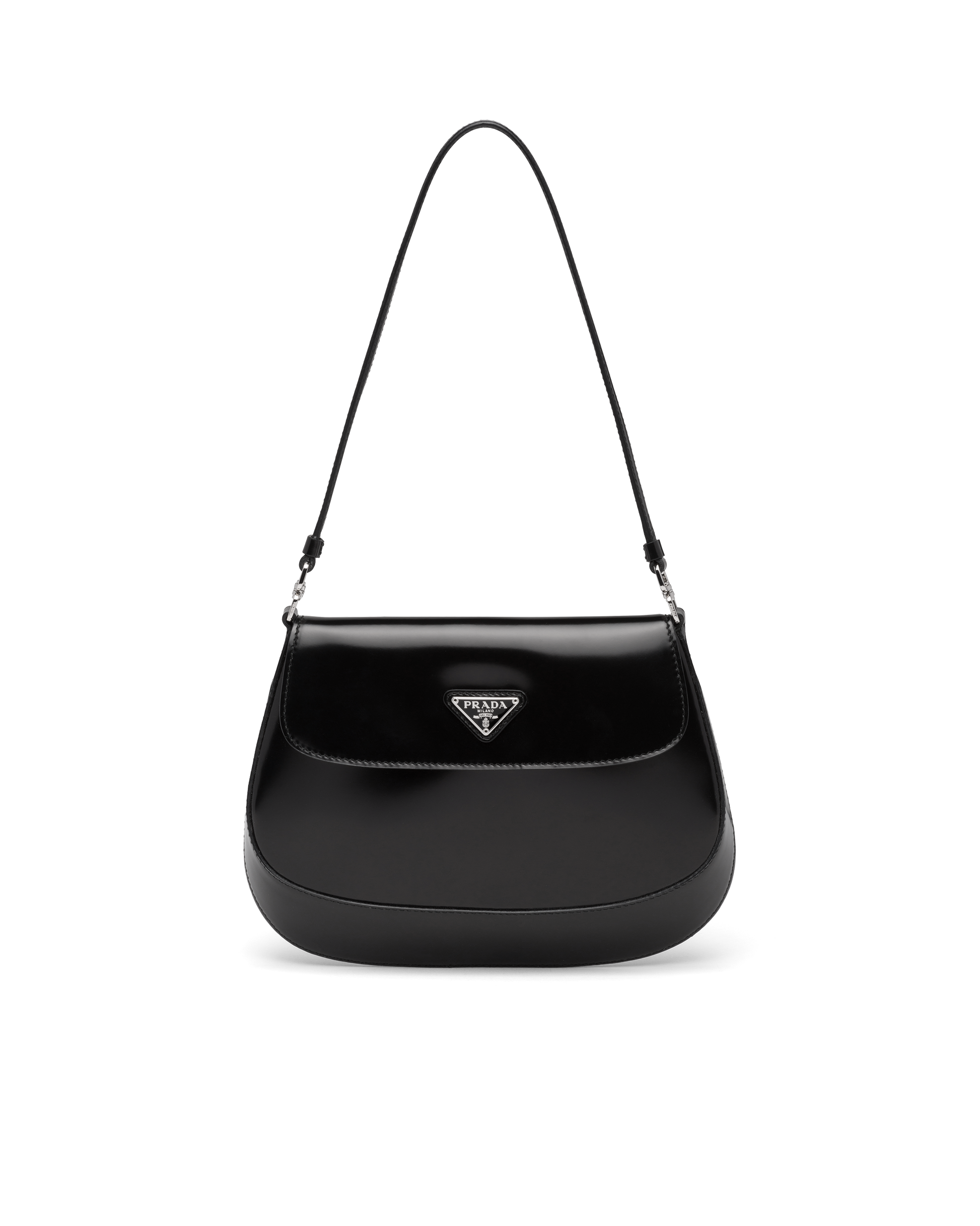 Prada Cleo Brushed Leather Shoulder Bag With Flap - Black