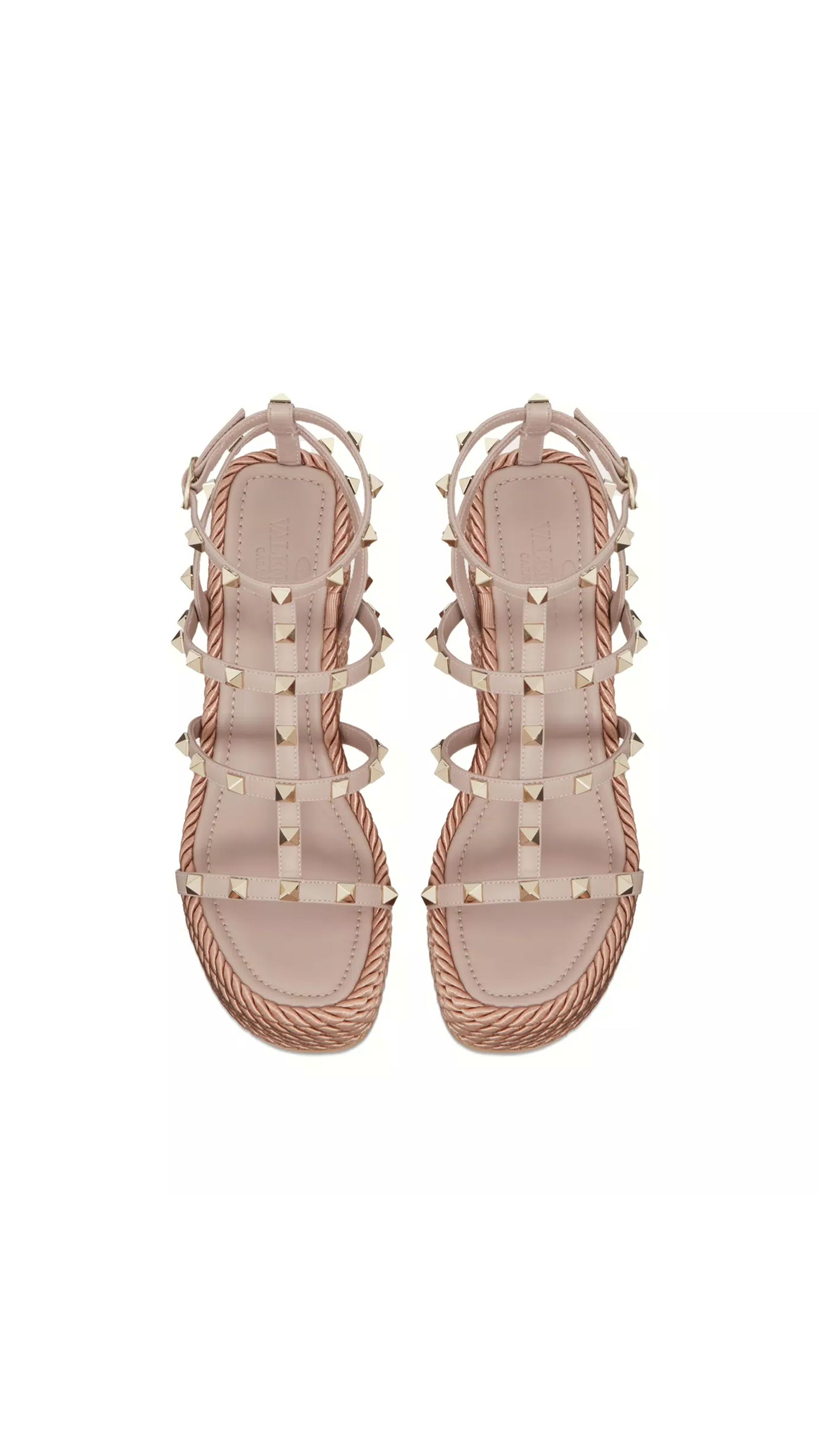 Rockstud Ankle Strap Wedge Sandal in Calfskin Leather 95MM - Poudre