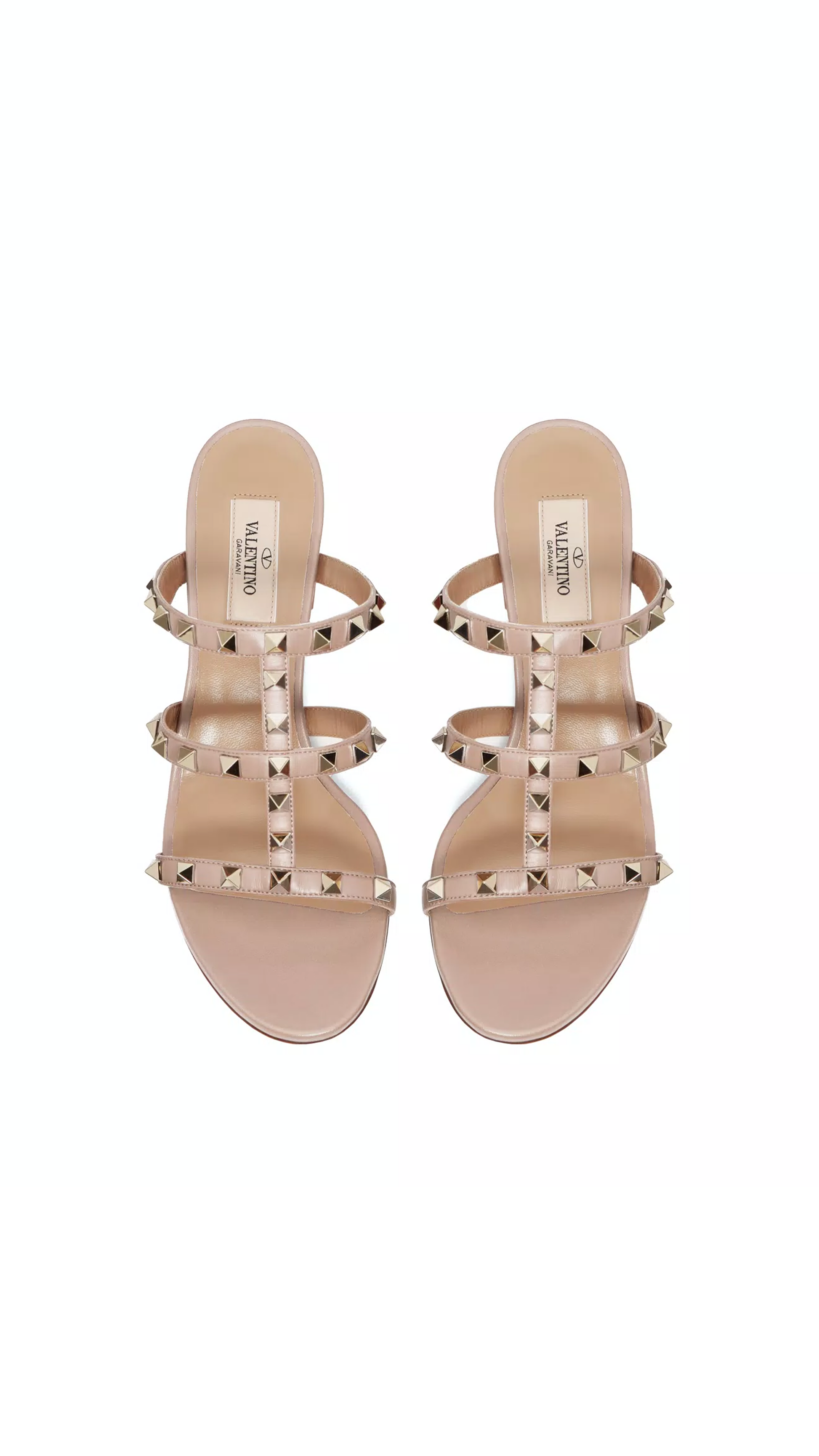 Rockstud Calfskin Leather Slide Sandal 60MM - Poudre