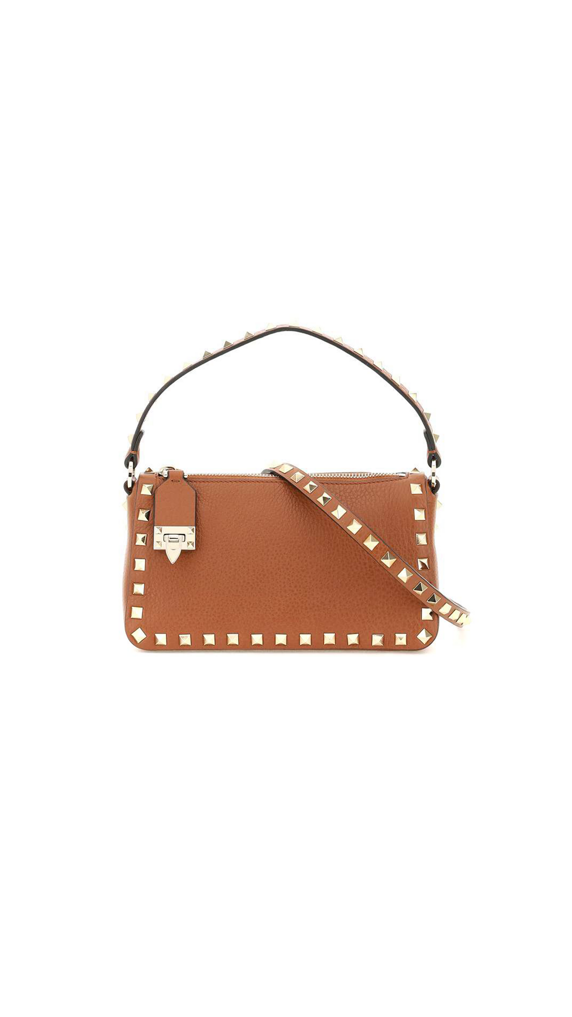 Rockstud Grainy Calfskin Crossbody Bag - Tan