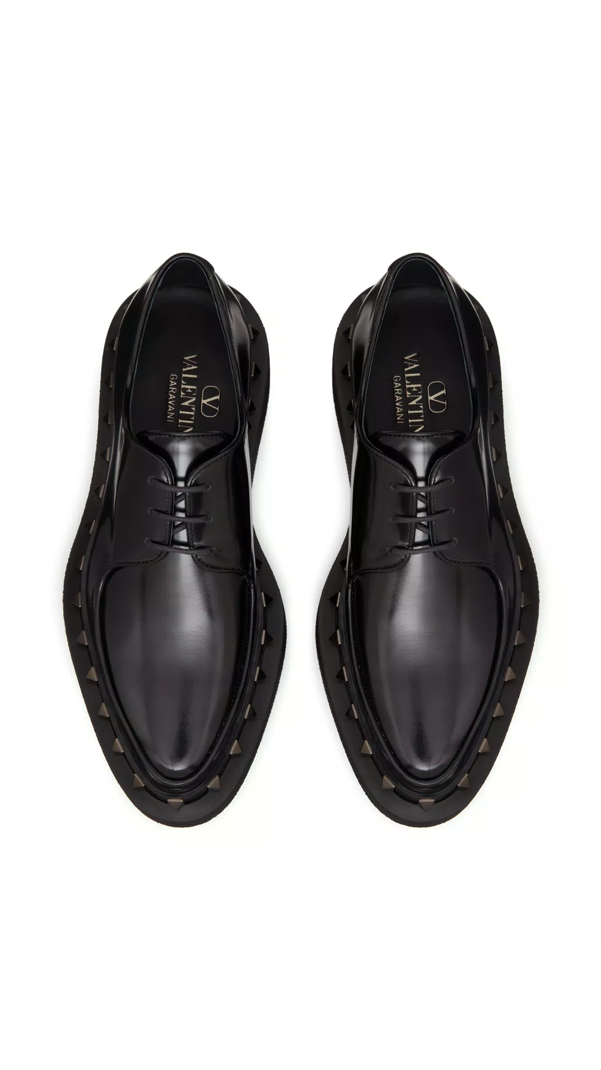 Rockstud M-Way Calfskin Derby with Matching Studs - Black