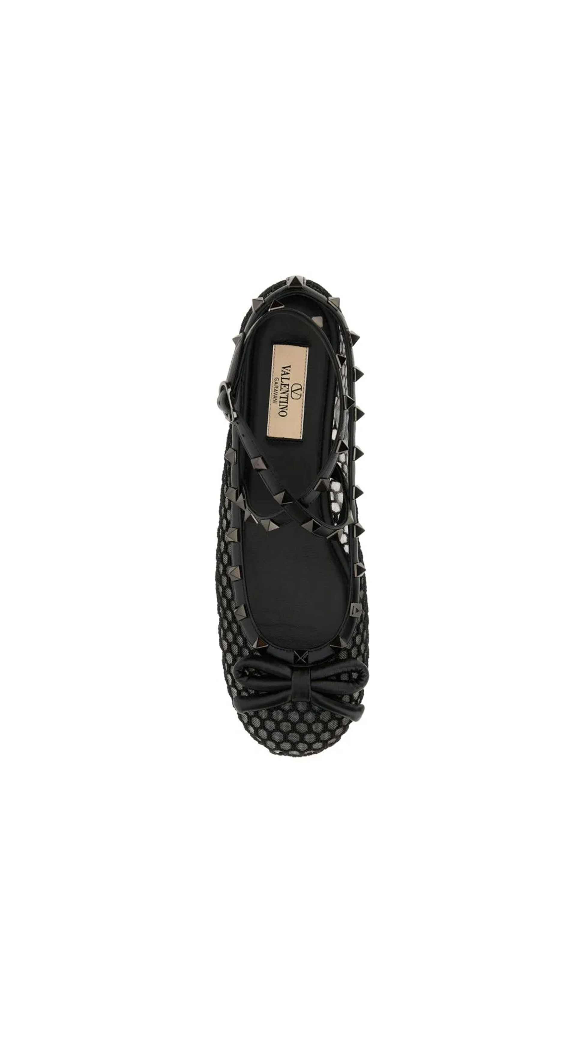 Rockstud Mesh Ballerina with Tone-on-Tone Studs - Black