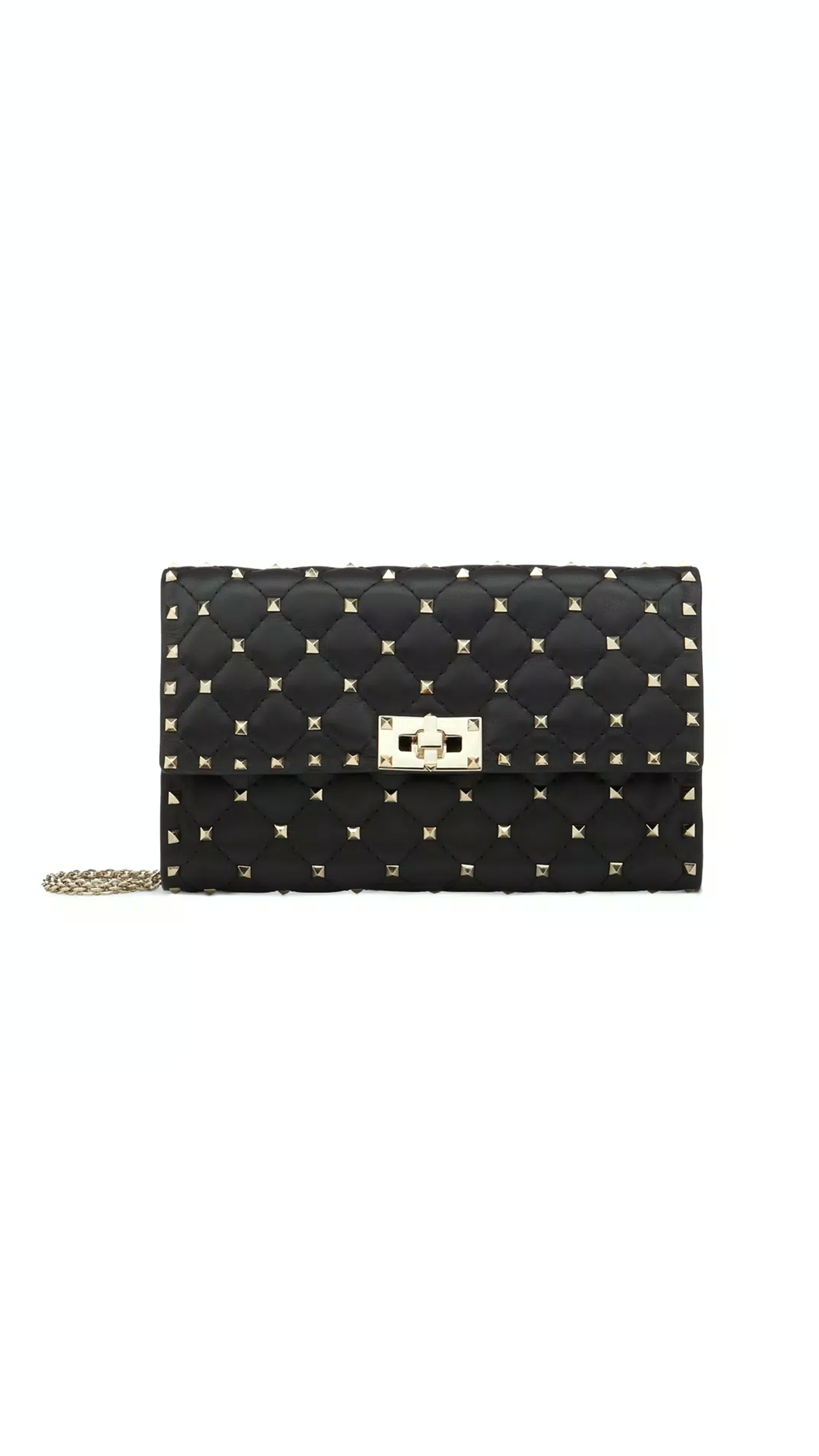 Rockstud Spike Nappa Leather Crossbody Clutch Bag - Black