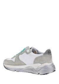 Woman's calfskin Running Sole Sneakers by Golden Goose, lace-up front closure, round toe, iconic brand star patch applied to side panel, iconic brand signature embroidered label on front tab, contrasting brand signature at heel.