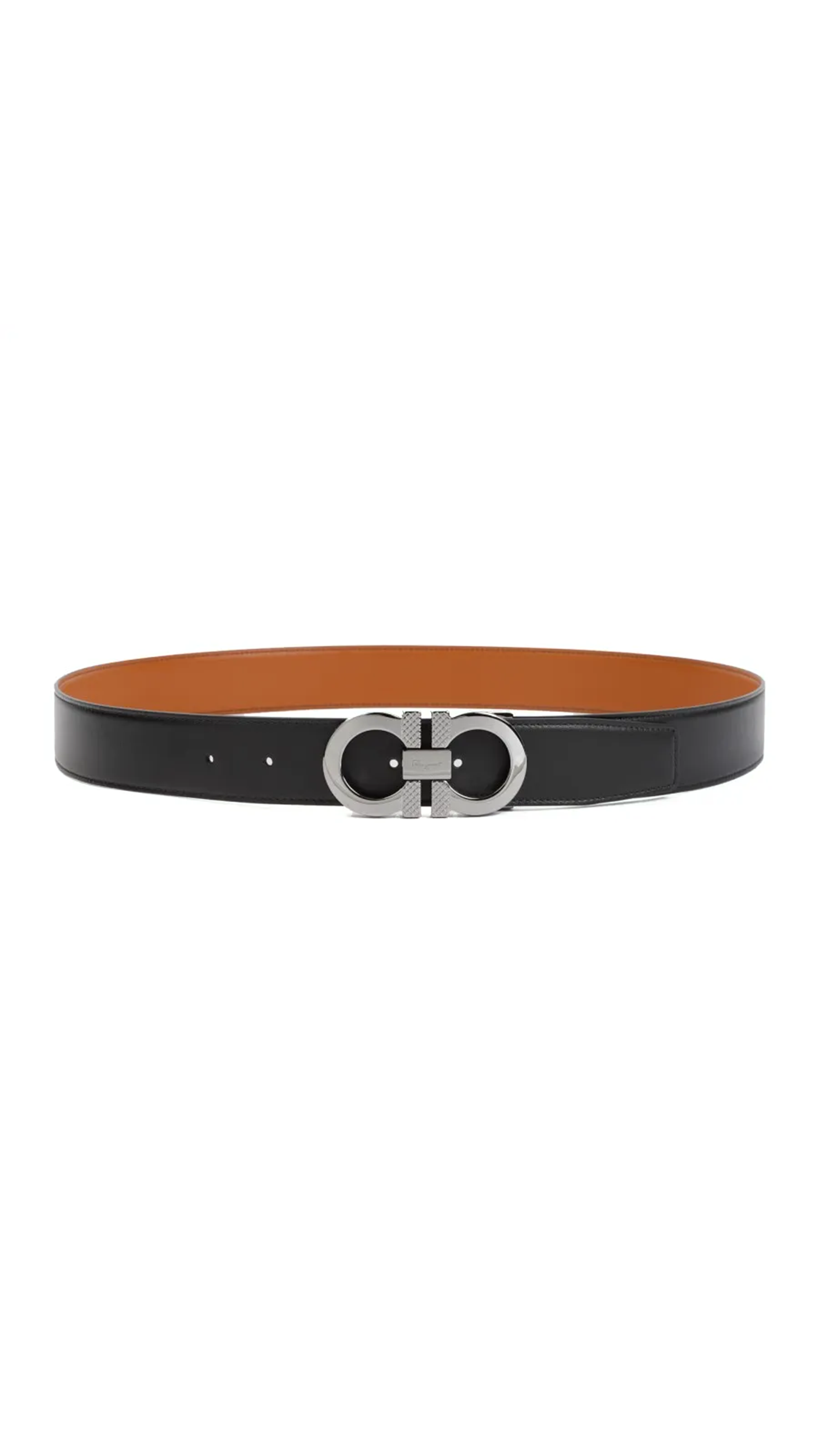 Reversible and Adjustable Gancini Belt - Black/Vicuña