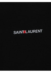 Men's Cotton Hoodie by Saint Laurent, brand logo print on front, pocket on front, long sleeves with cuffs.
