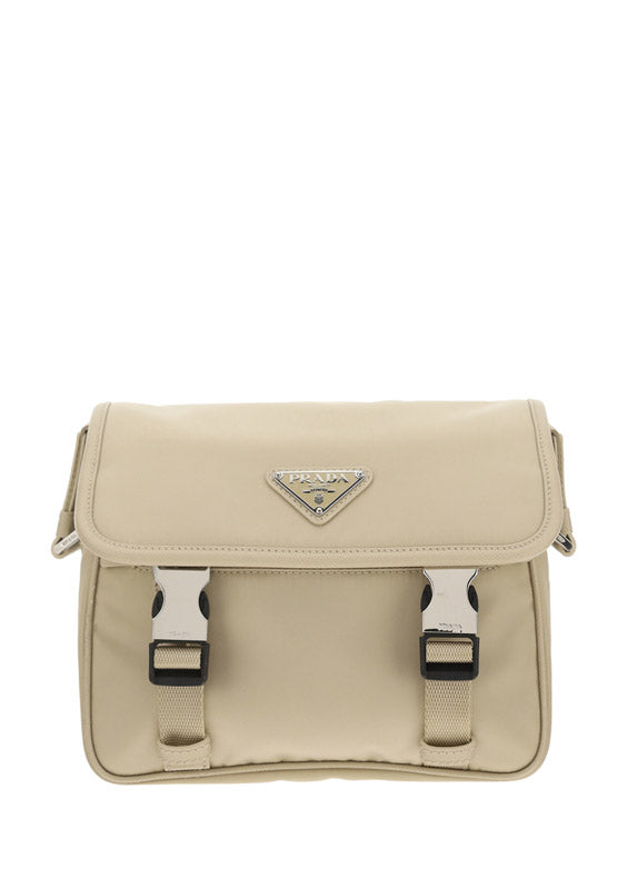 Re-Nylon and Saffiano Leather Shoulder Bag - Beige