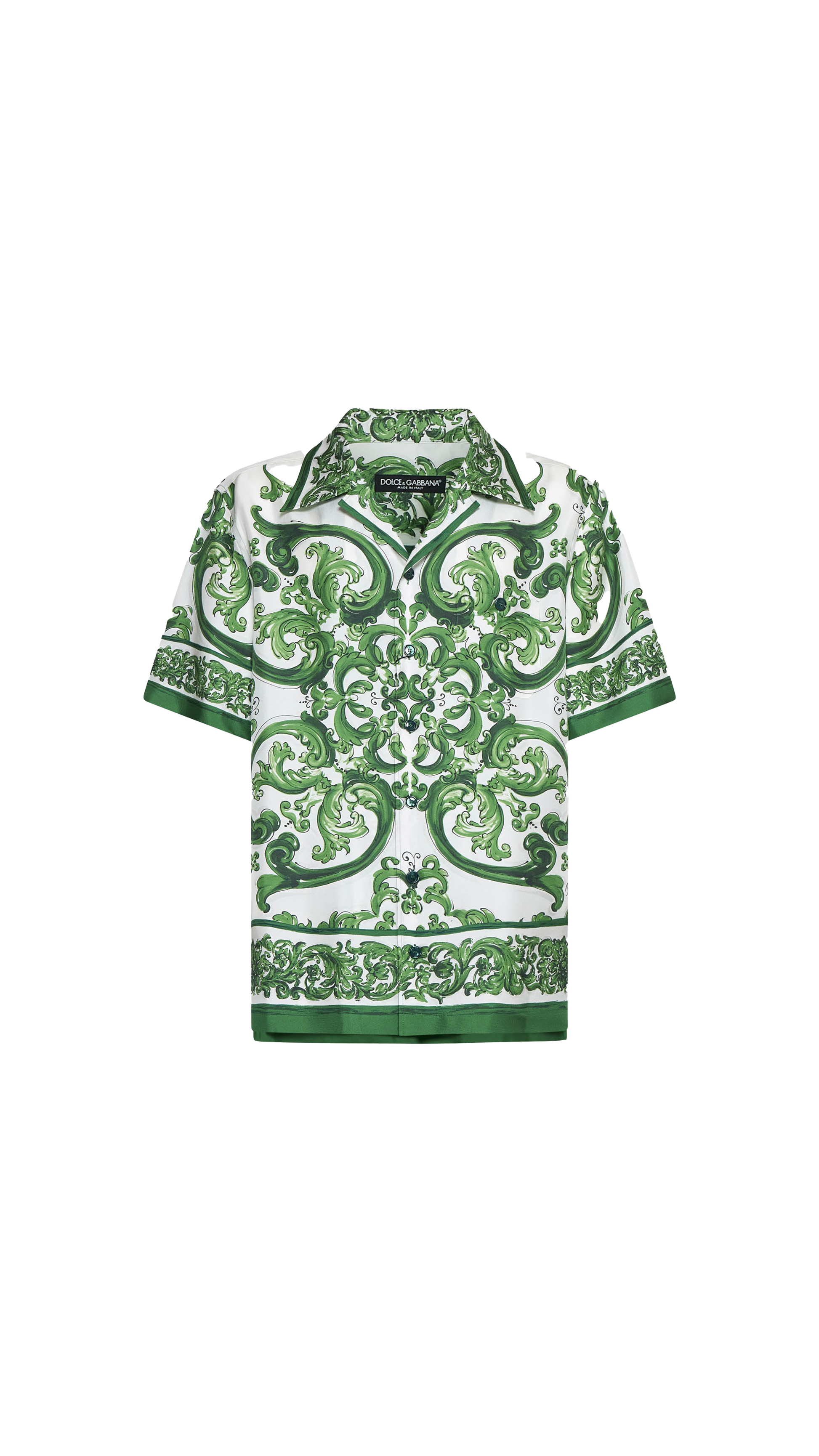 Silk Twill Hawaiian Shirt With Majolica Print - Green