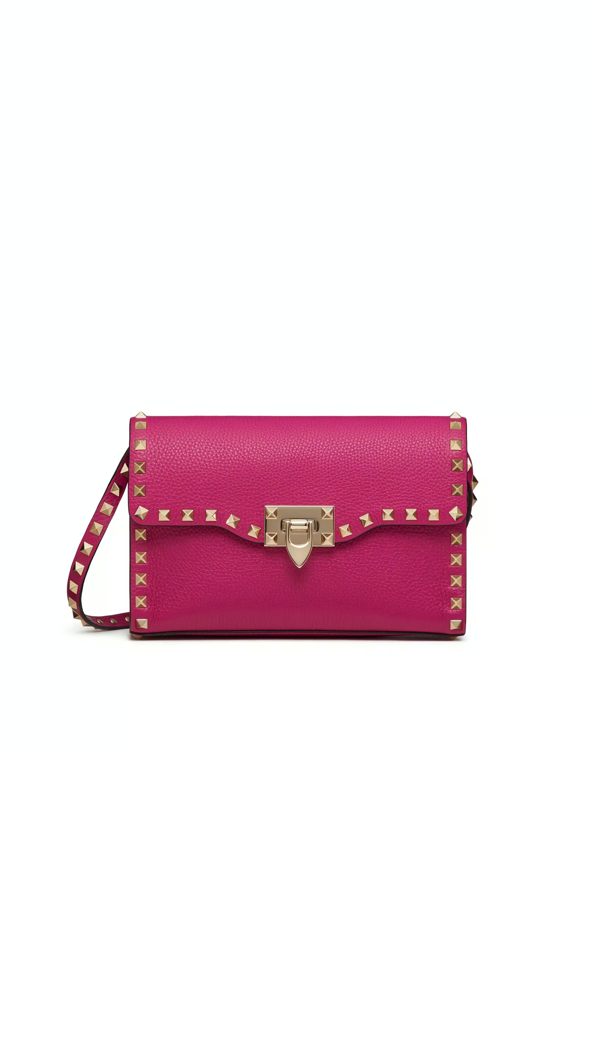 Small Rockstud Grainy Calfskin Crossbody Bag - Blossom