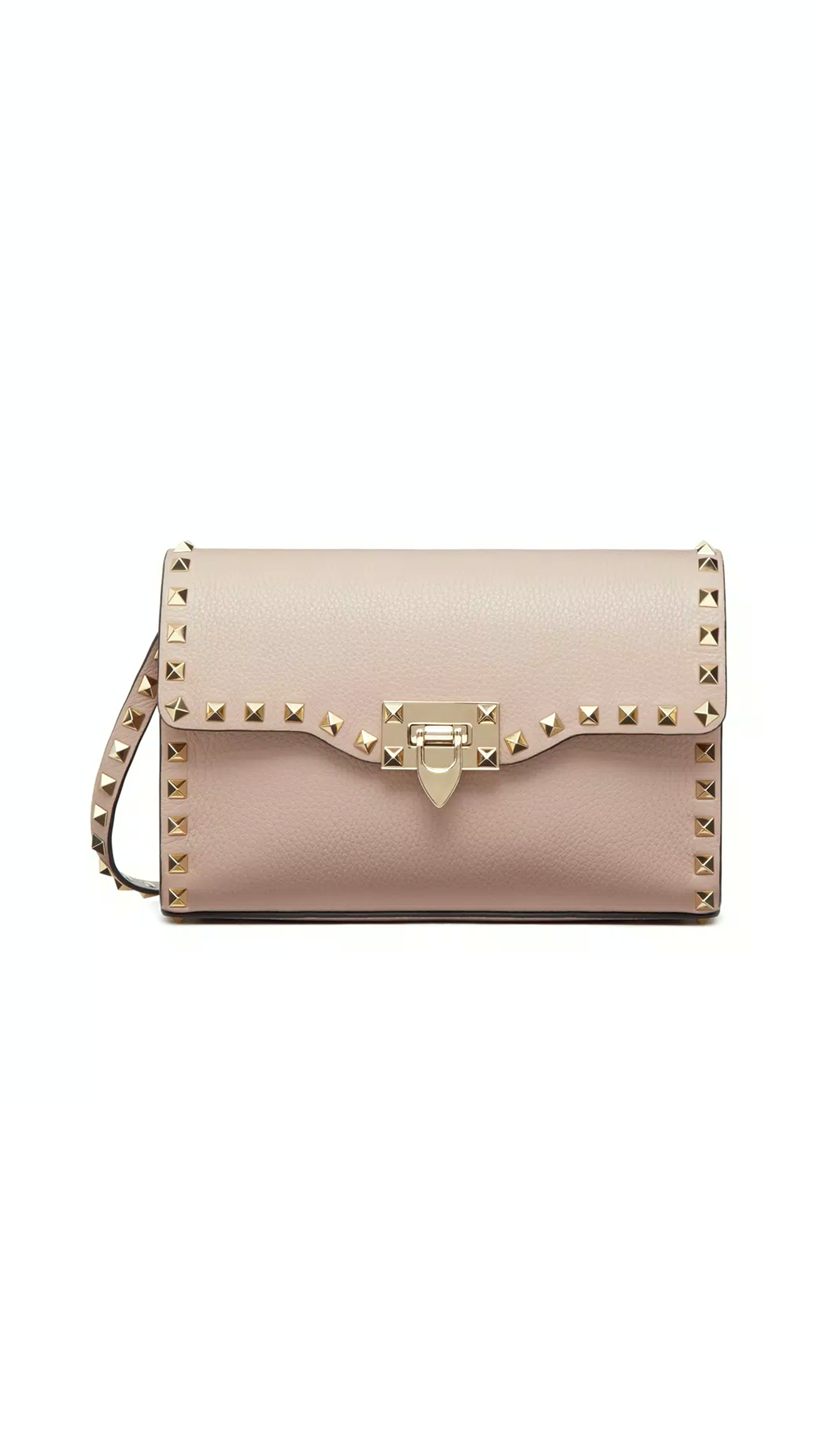 Small Rockstud Grainy Calfskin Crossbody Bag - Poudre