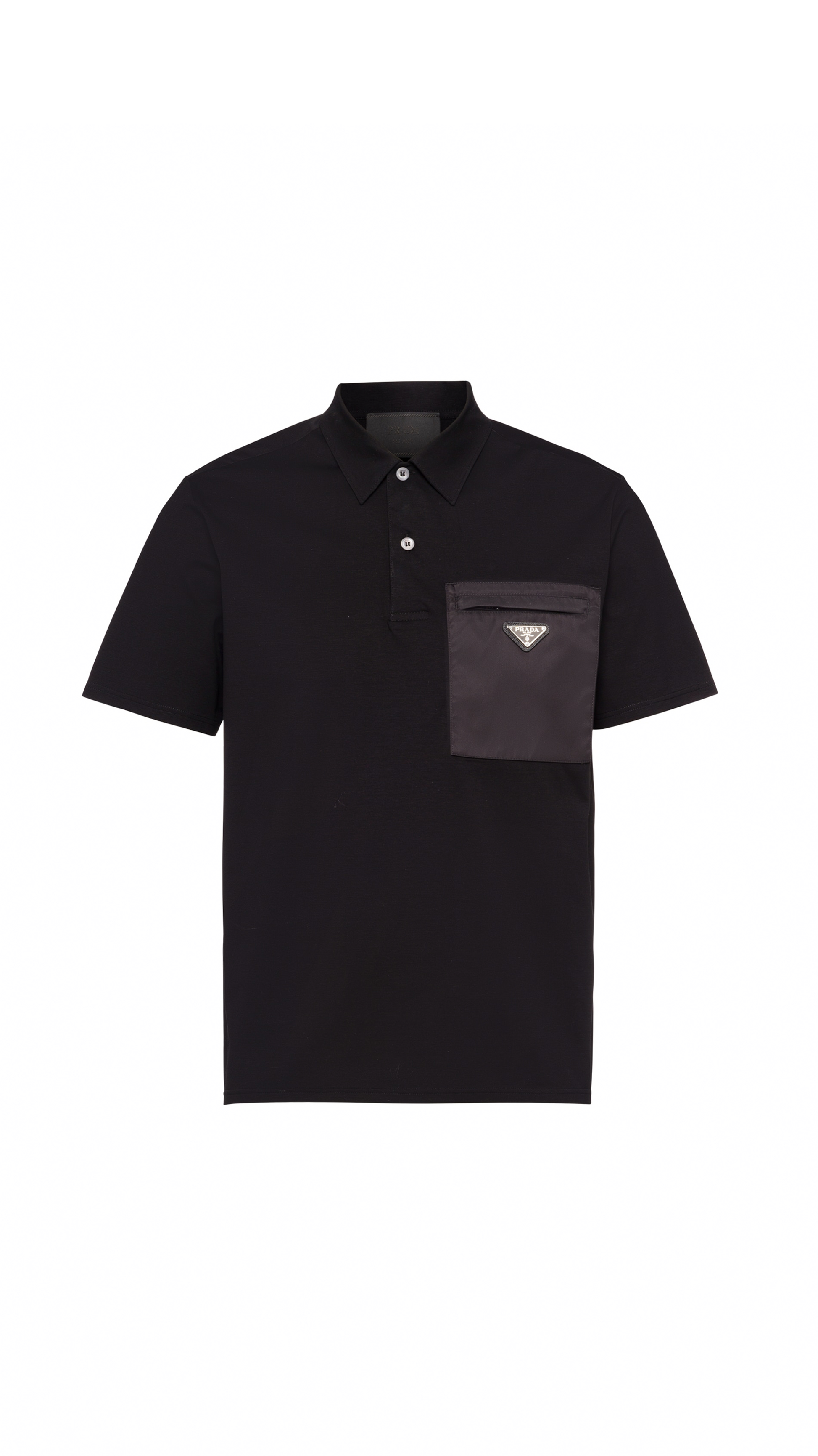 Stretch Cotton Polo Shirt with Nylon Details - Black