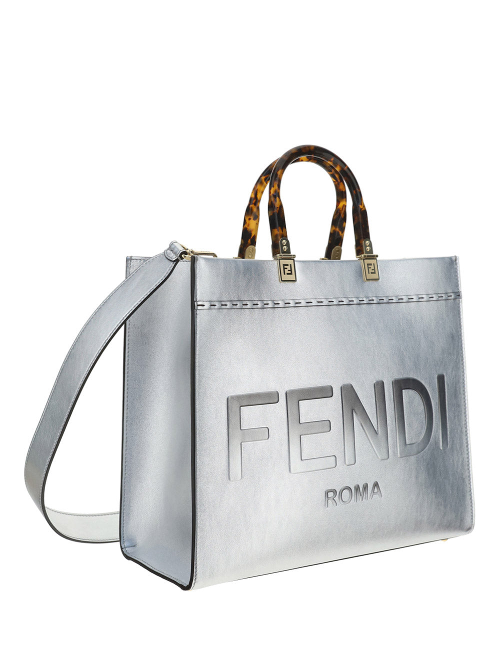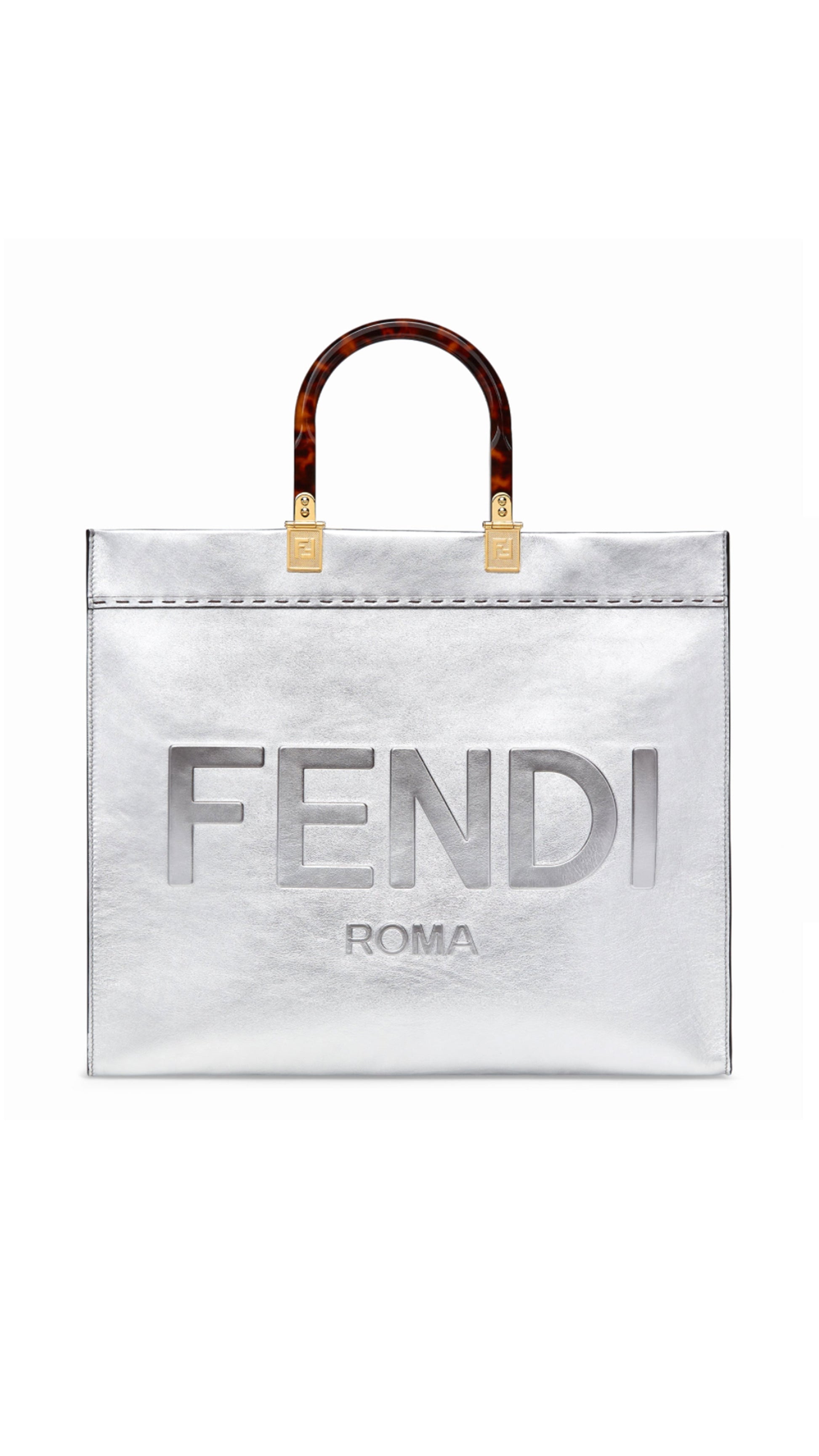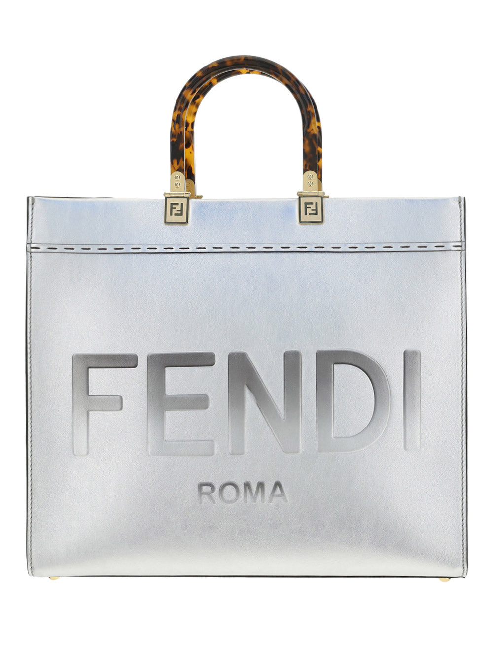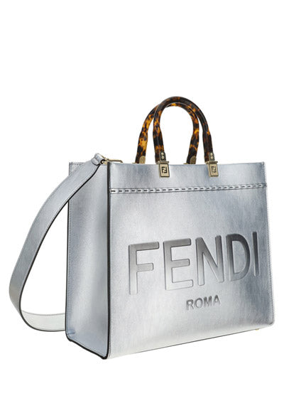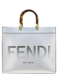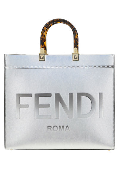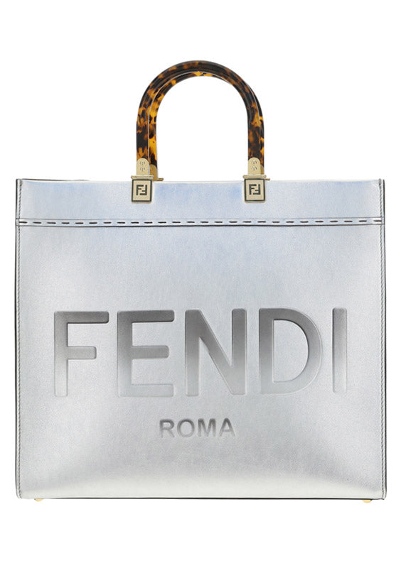 Calfskin Sunshine Catalan Mirror Bag by Fendi, two rigid handles, maxi brand logo on the front tone on tone, single internal compartment, removable leather shoulder strap.